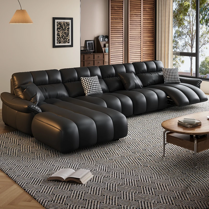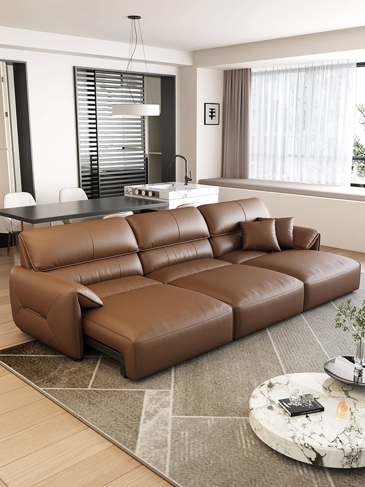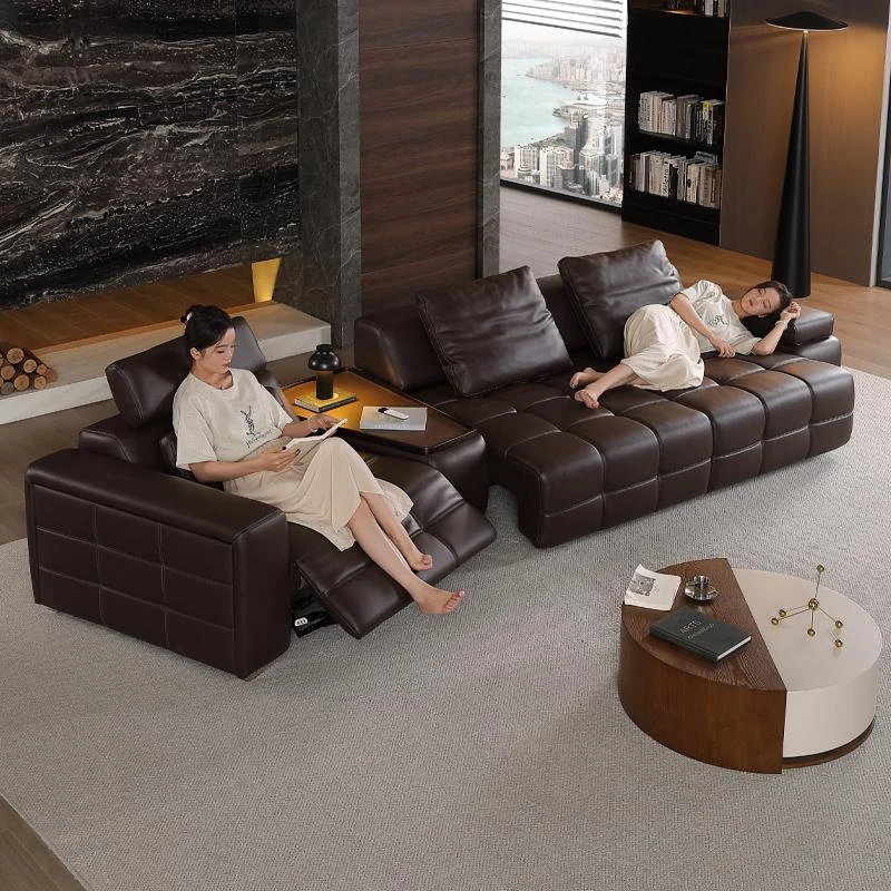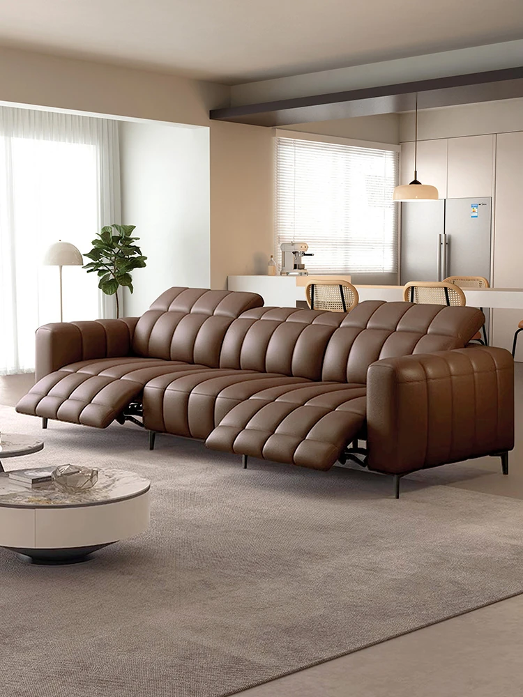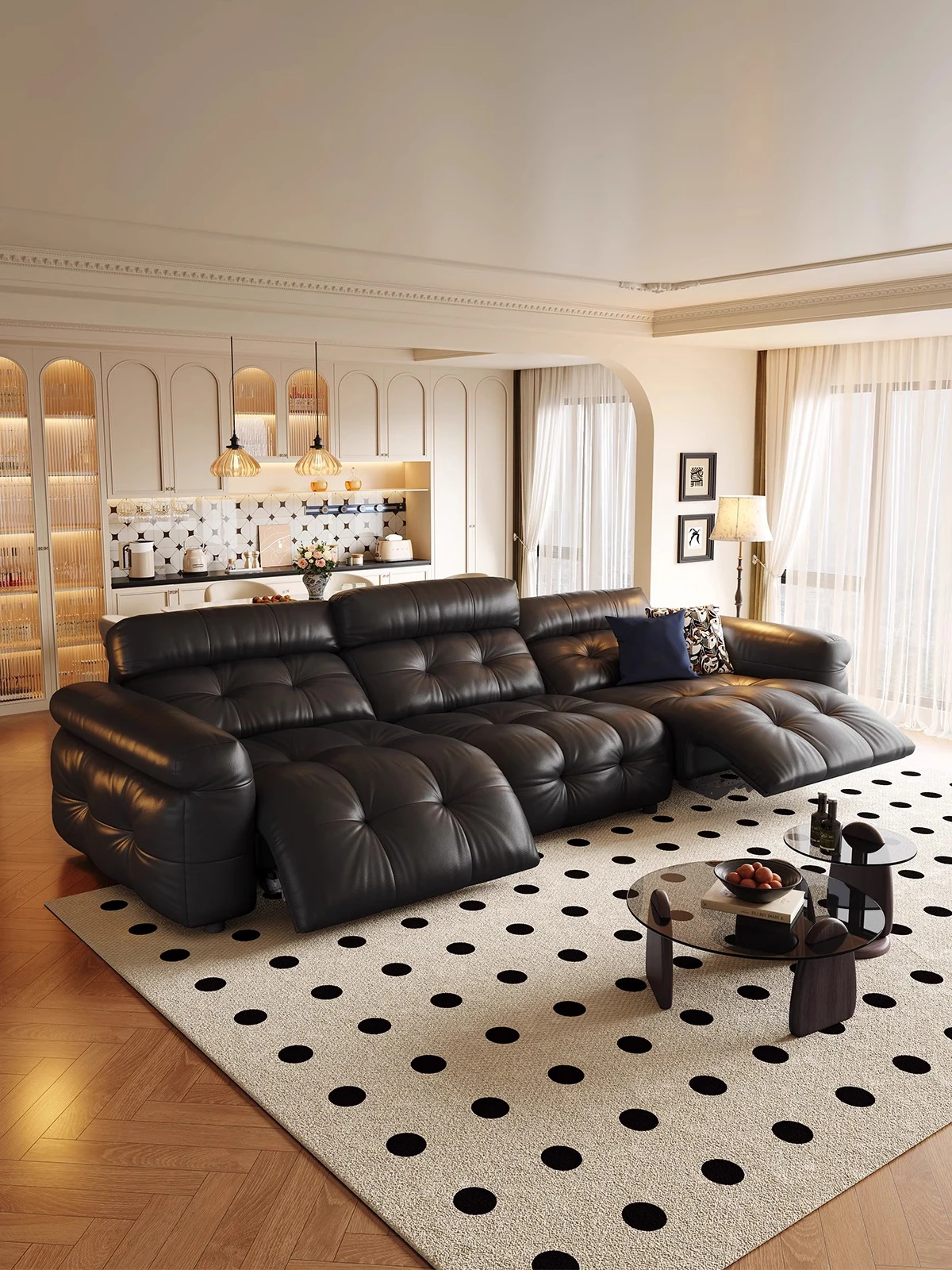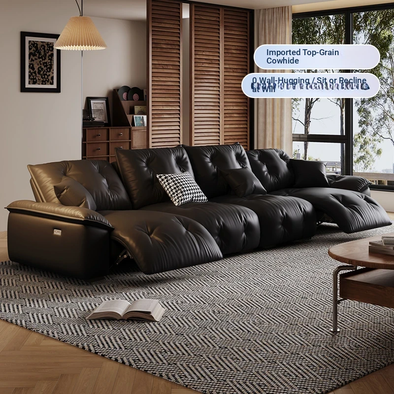 2024 New Vintage Style Wall-Hugging Multi-Functional Electric Leather Sofa with Chaise Lounge - Premium Top-Grain Cowhide for Home Living Room