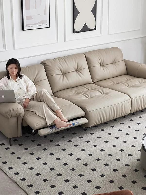 Modern French Style Cream Electric 3-Seater Sofa for Small Spaces - Cloud-Like Genuine Leather Design by Top Designers, Perfect for Your Living Room