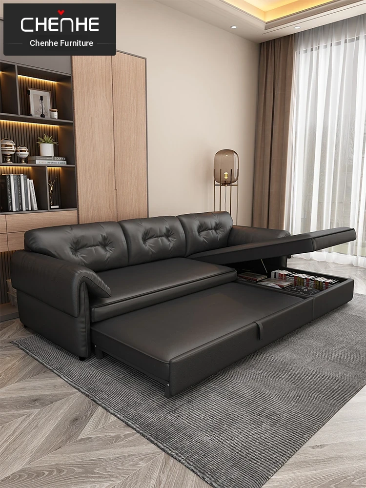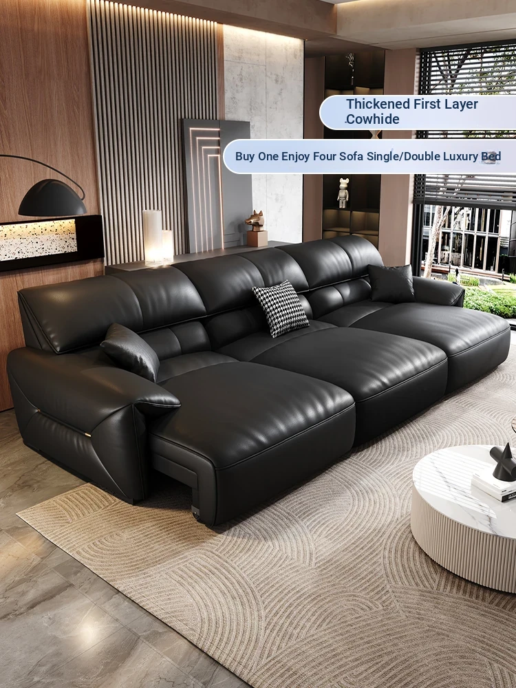 Electric Function Genuine Leather Sofa Bed - Italian Vintage Design, Expandable with Elephant Ear Features, Top-Grade Cowhide for Your Living Room