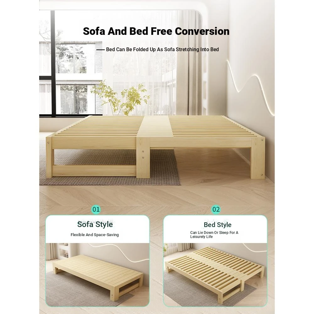 "Foldable Sofa Bed - Multi-functional Solid Wood for Home Use, Perfect for Small Apartments and Tatami Rooms, Easy Single Person Setup"