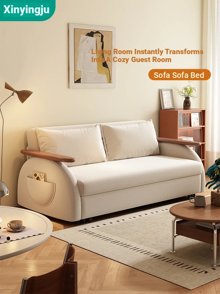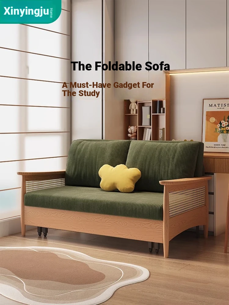 Xinyingju 2025 New Japanese Style Solid Wood Sofa Bed - Multi-Functional Folding Design for Small Apartments, Perfect for Your Living Room!