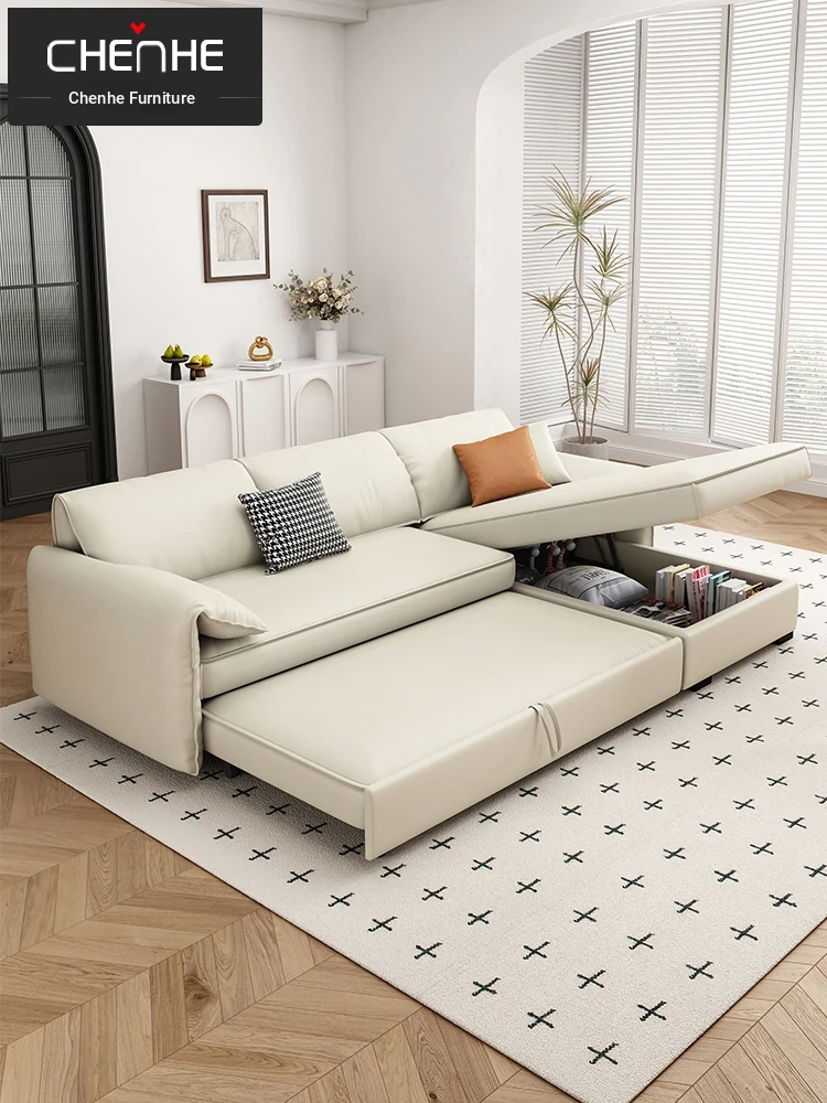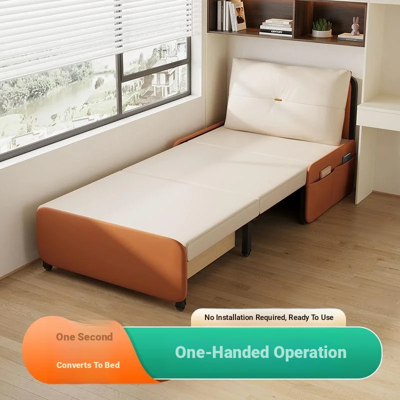 2024 New Smart Electric Cream Wind Folding Sofa Bed - Multifunctional, Space-Saving Design for Small Living Rooms, Perfect for Single Users