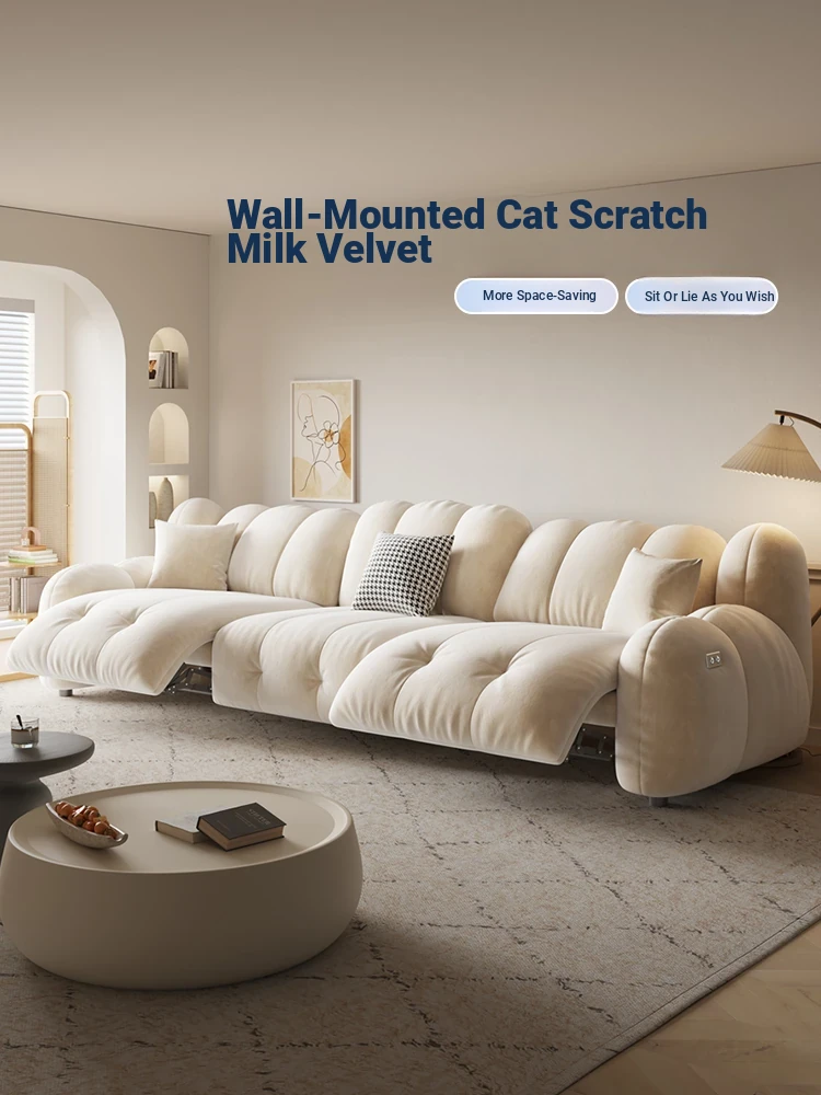 Deluxe Space Multi-Functional Cat Scratch Sofa - Cozy Velvet Fabric, Perfect for Small Living Rooms, Creamy Aesthetic, Electric Reclining Sofa for Home Use