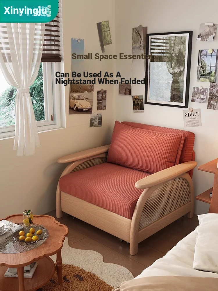 2025 New Arrivals: Multifunctional Folding Solid Wood Sofa Bed - Minimalist Design for Small Spaces, Perfect for Single Living Rooms with Storage Option