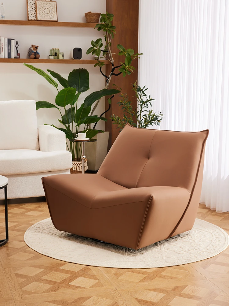 Ximu Cloud Single Lazy Sofa - Modern Minimalist Leather Rotating Chair for Living Room - Stylish New Black Cowhide Design