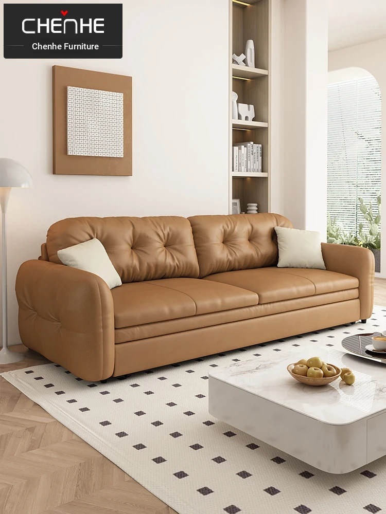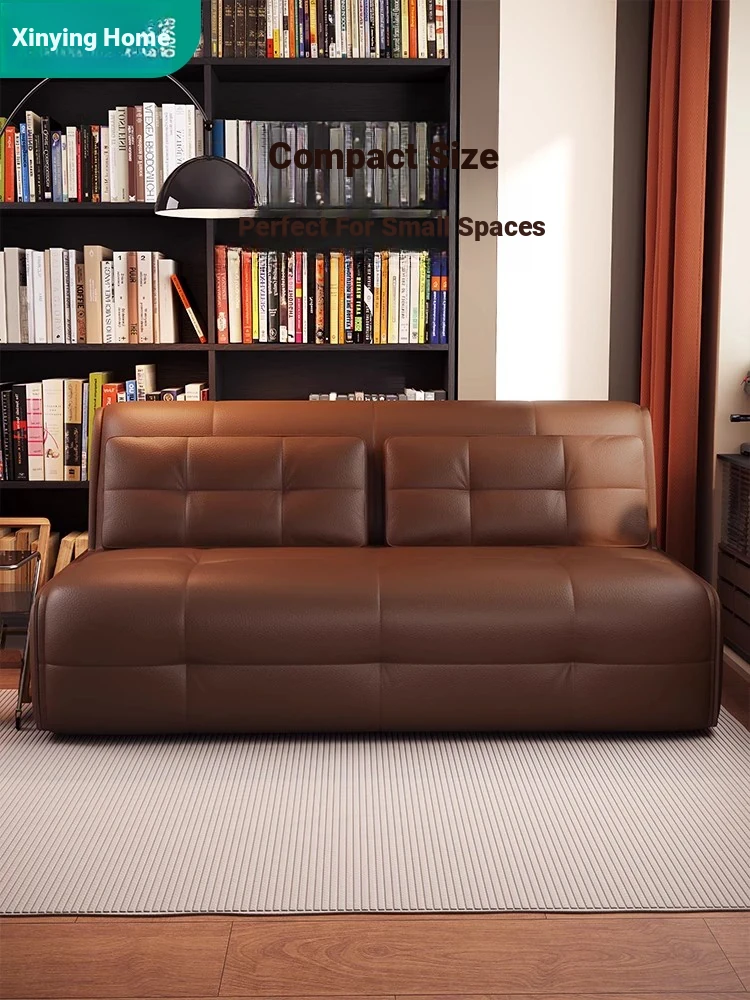 Xinyingju Electric Smart Genuine Leather Sofa Bed – Premium Multi-Functional Folding Sofa for Small Living Rooms and Study Areas, Perfect for Dual Use