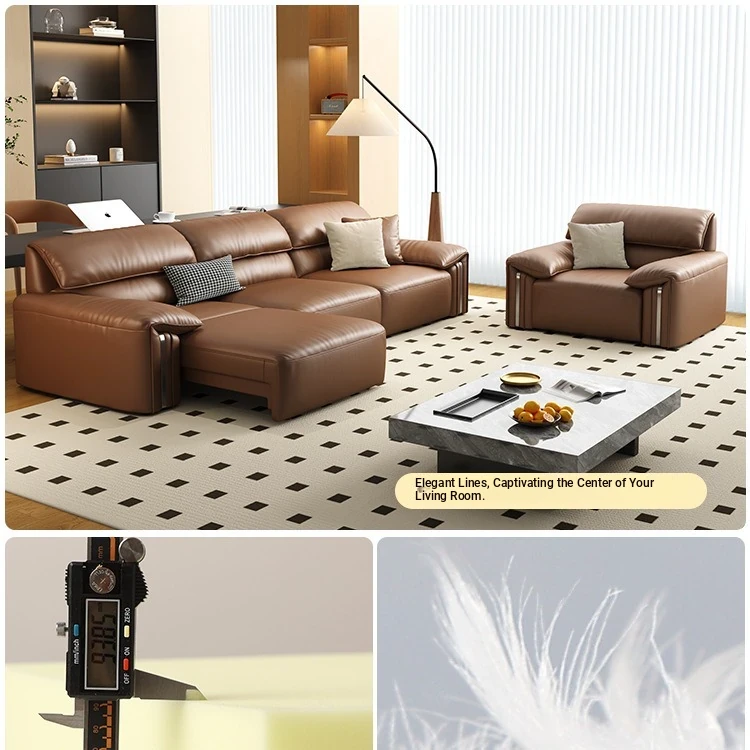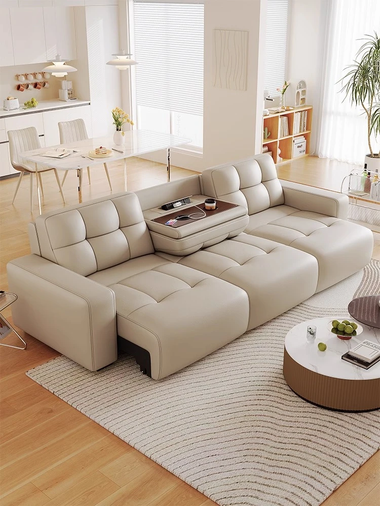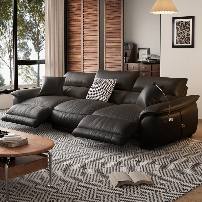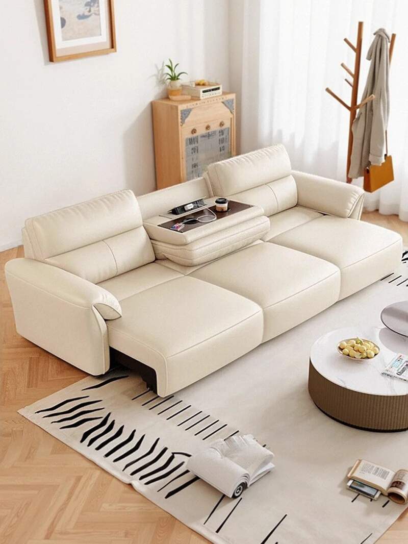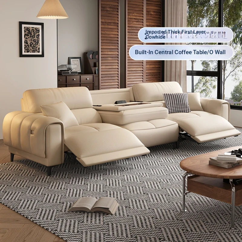 Luxury Space Function Electric Sofa - Modern Minimalist Leather Couch with Genuine Top-Grain Cowhide for Living Room, Perfect for Wall Placement