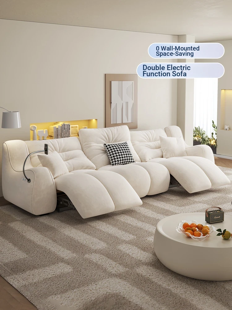 Zero Wall Cream Fabric Electric Sofa - Italian Light Luxury Living Room Sofa with Cat Scratch Resistant Upholstery and Space-saving Design. Perfect for Modern Homes!