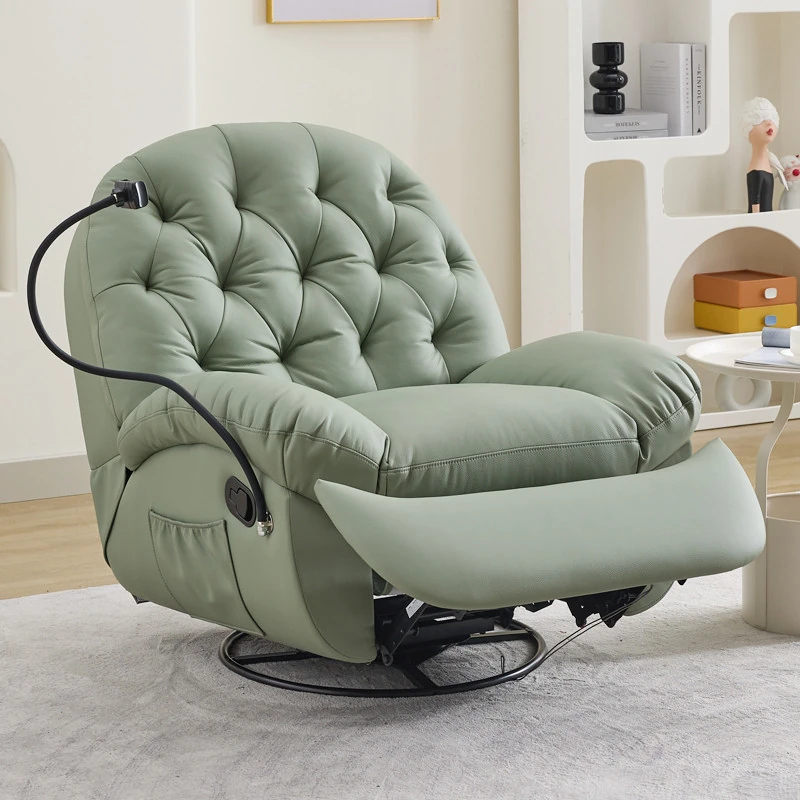 Genuine Leather Electric Recliner Chair - Versatile Lazy Sofa for Living Room & Balcony, Perfect for Seniors with Massage Function and Comfortable Chaise Lounge Design