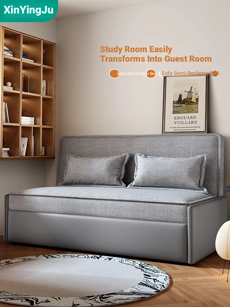 Xinyingju New Foldable Fabric and Leather Sofa Bed - Modern Minimalist Multi-Functional Storage Bed for Small Apartments and Living Rooms