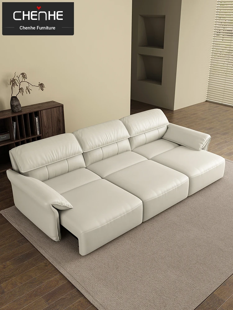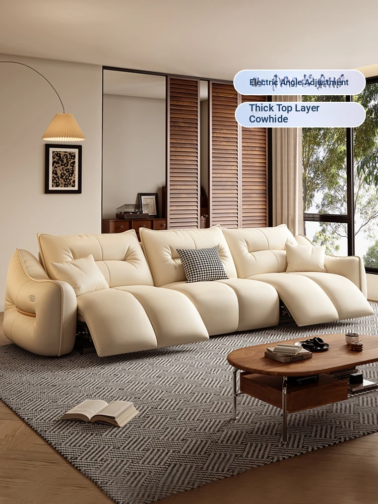2024 New Arrival: Zero Wall Clearance Elephant Ear Genuine Leather Electric Sofa - Adjustable 3-Seater for Home Theater and Living Room Comfort