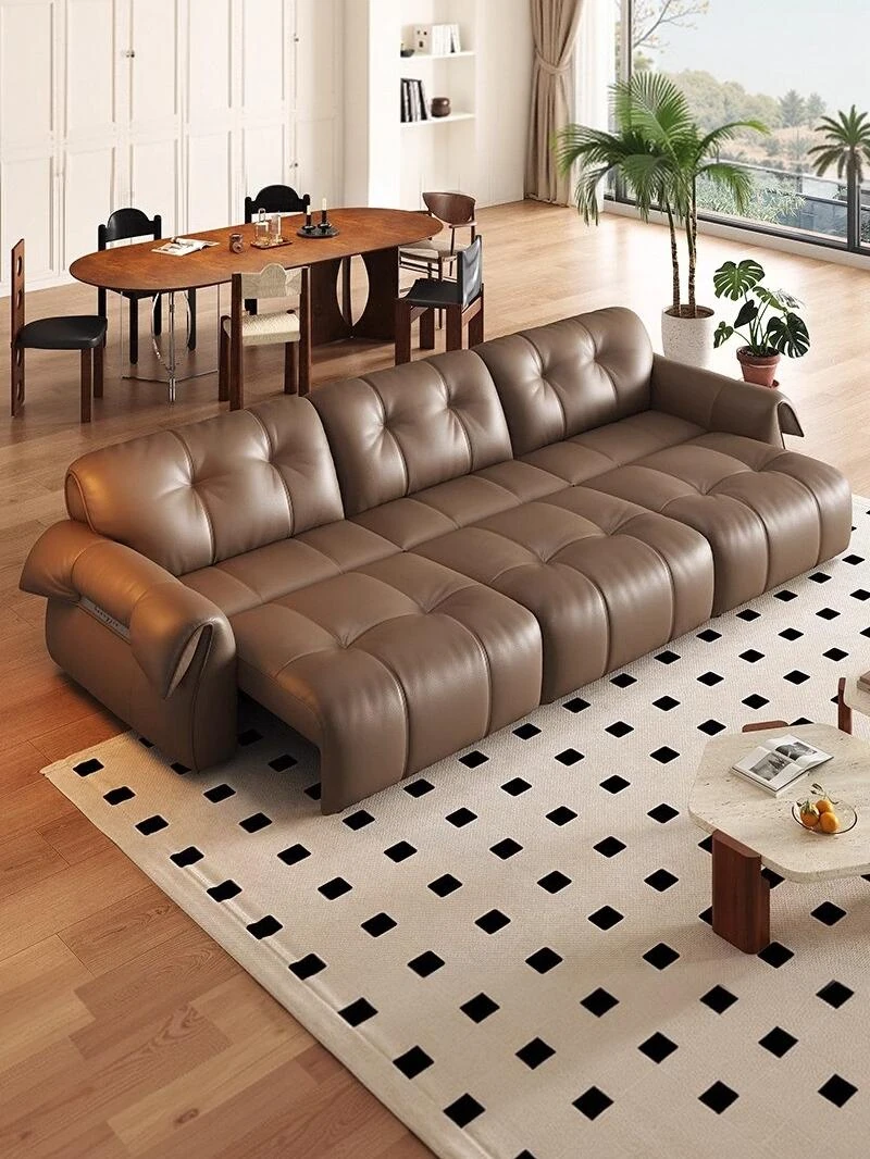 Premium Multifunctional Leather Sofa - Modern Minimalist Vintage Style with Cat Ears, Wall-Free Design, Made from Top-Grade Cowhide for Ultimate Comfort and Elegance.