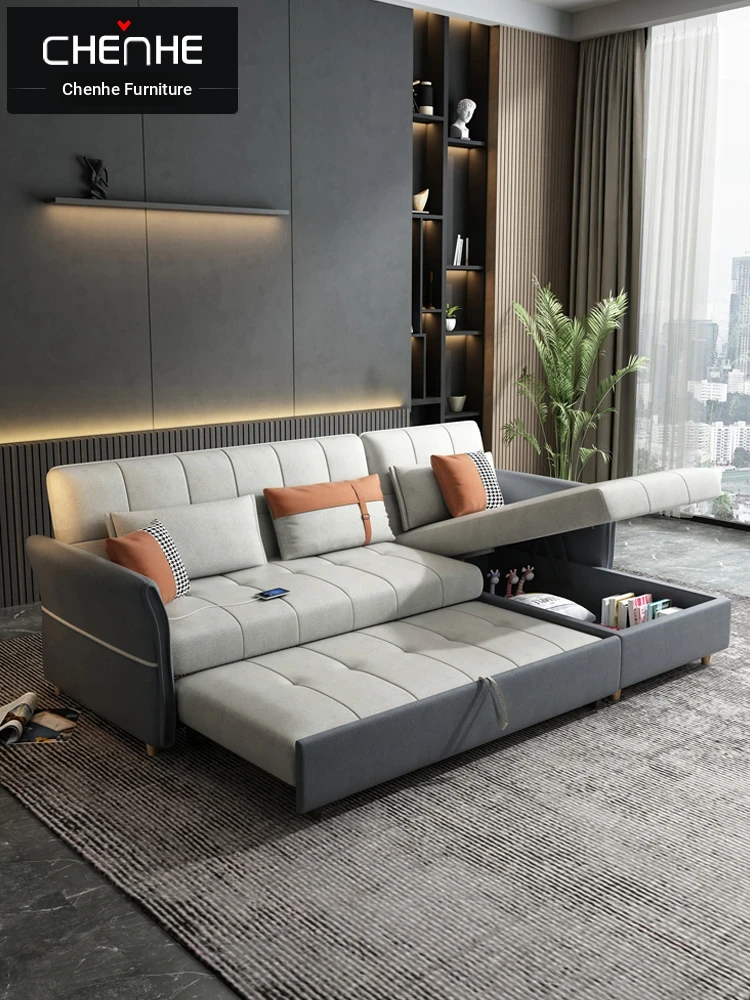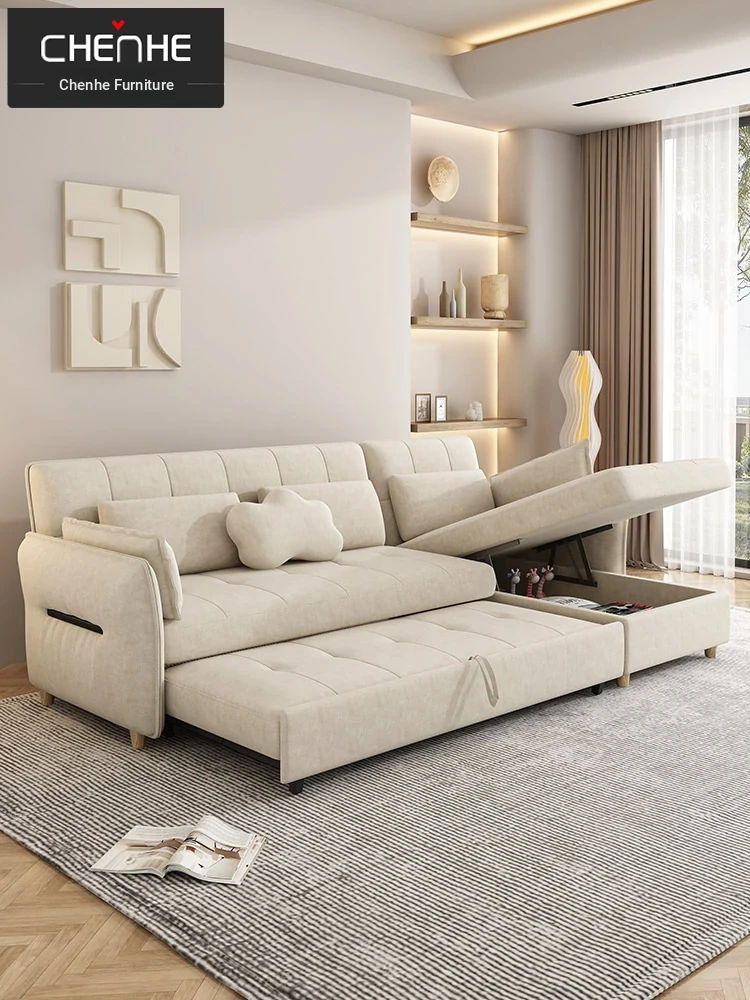 Italian Minimalist Foldable Sofa Bed - Multifunctional and Space-Saving for Living Rooms, with Storage and Stretchable Features in High-Tech Fabric