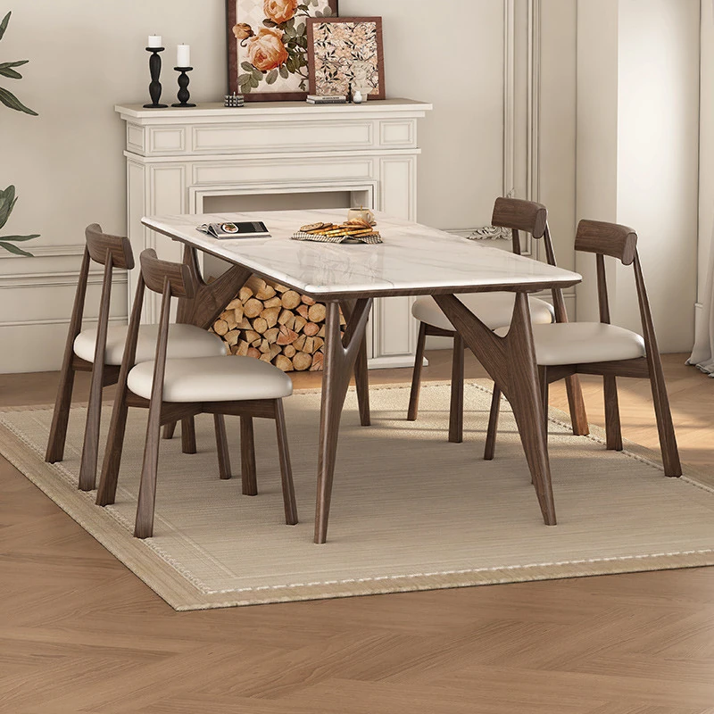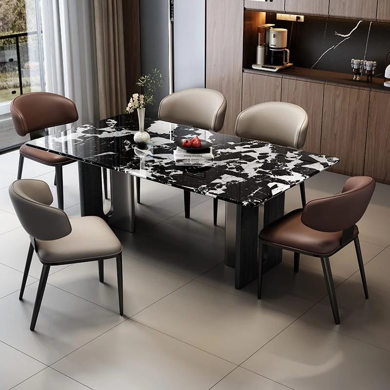 Elegant Luxury Dining Table and Chair Set - Rectangular Marble and Solid Wood Dining Table for Home Use, Designed with Natural Stone Aesthetics for a Chic Dining Experience.