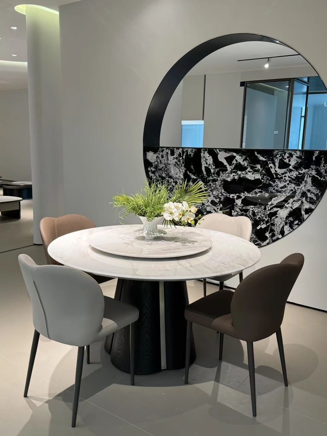 Foshan Italian Minimalist Dining Table and Chair Set - Modern Simple Design, Luxury Marble Round Table with Single Leg for Home Use