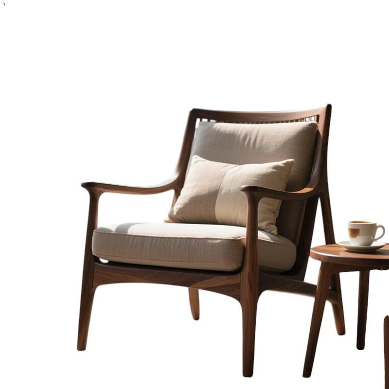 2025 New Minimalist Neo-Chinese Style Single Sofa Chair for Living Room & Balcony, Lazy Design in North American Black Walnut Solid Wood - Perfect for Modern Homes!