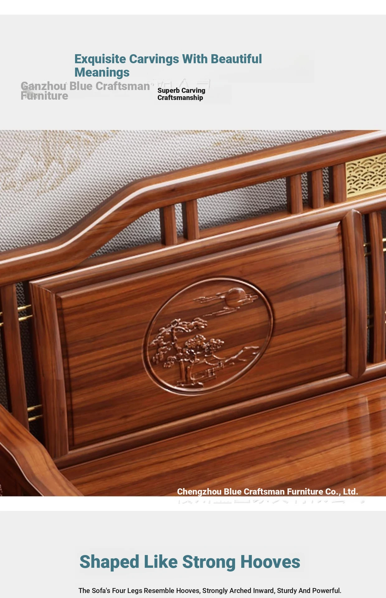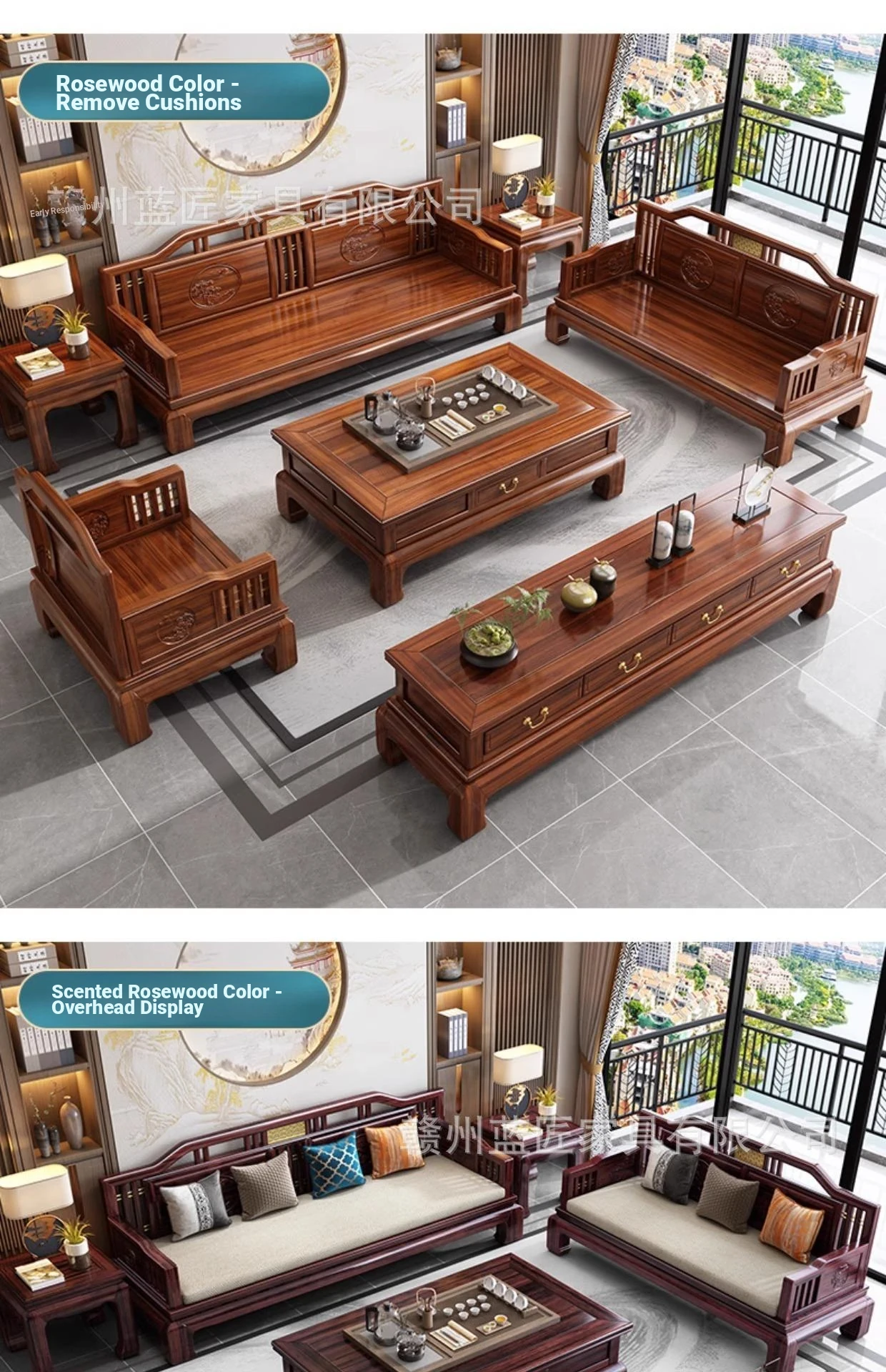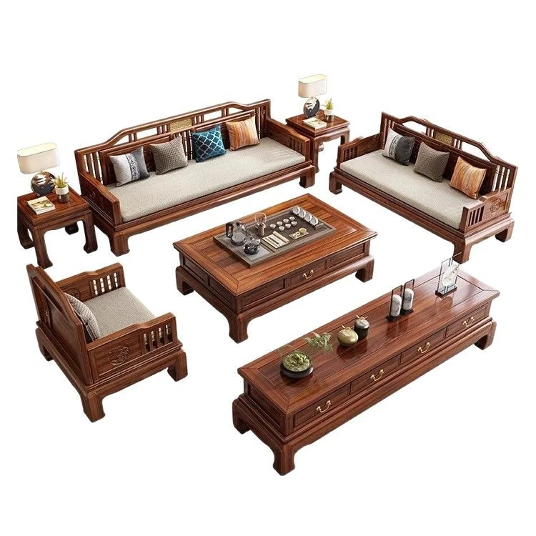"Elegant New Chinese Style Antique Solid Wood Sofa Set - Classic Carved Design for Small Living Rooms, Perfect for Year-Round Comfort"