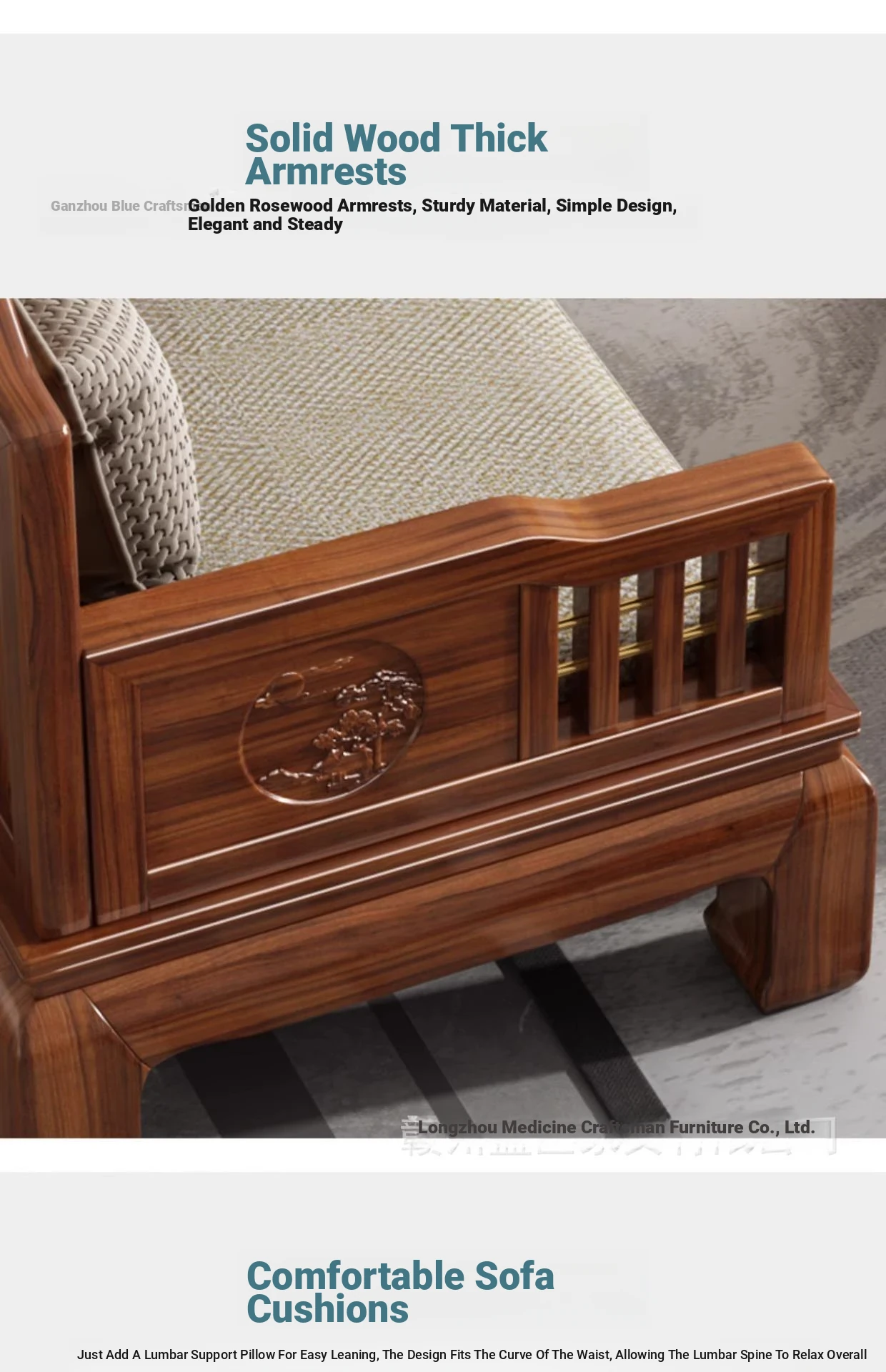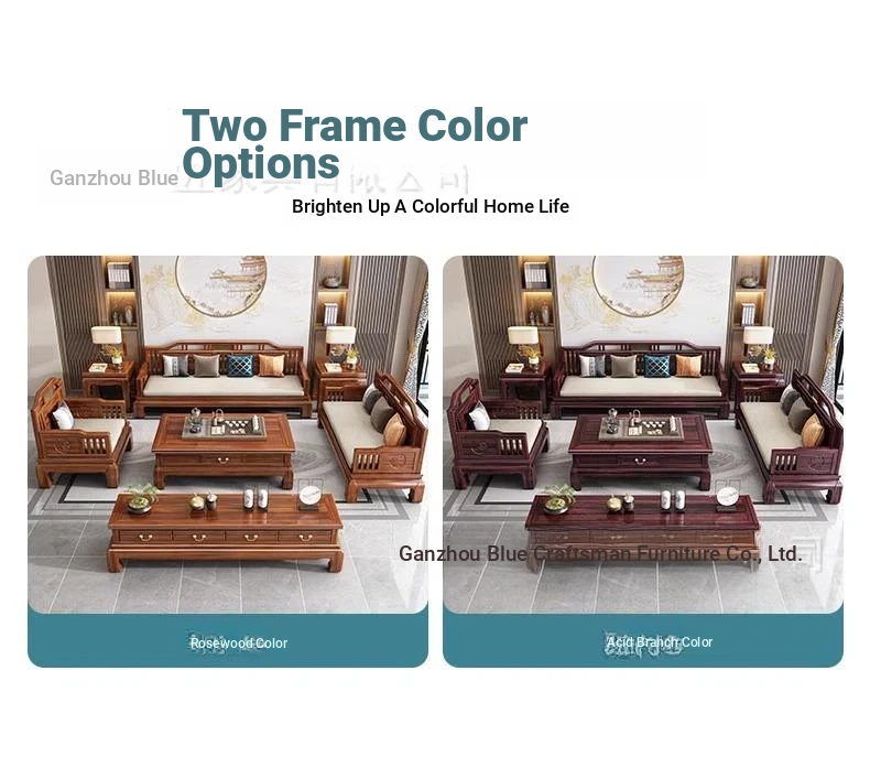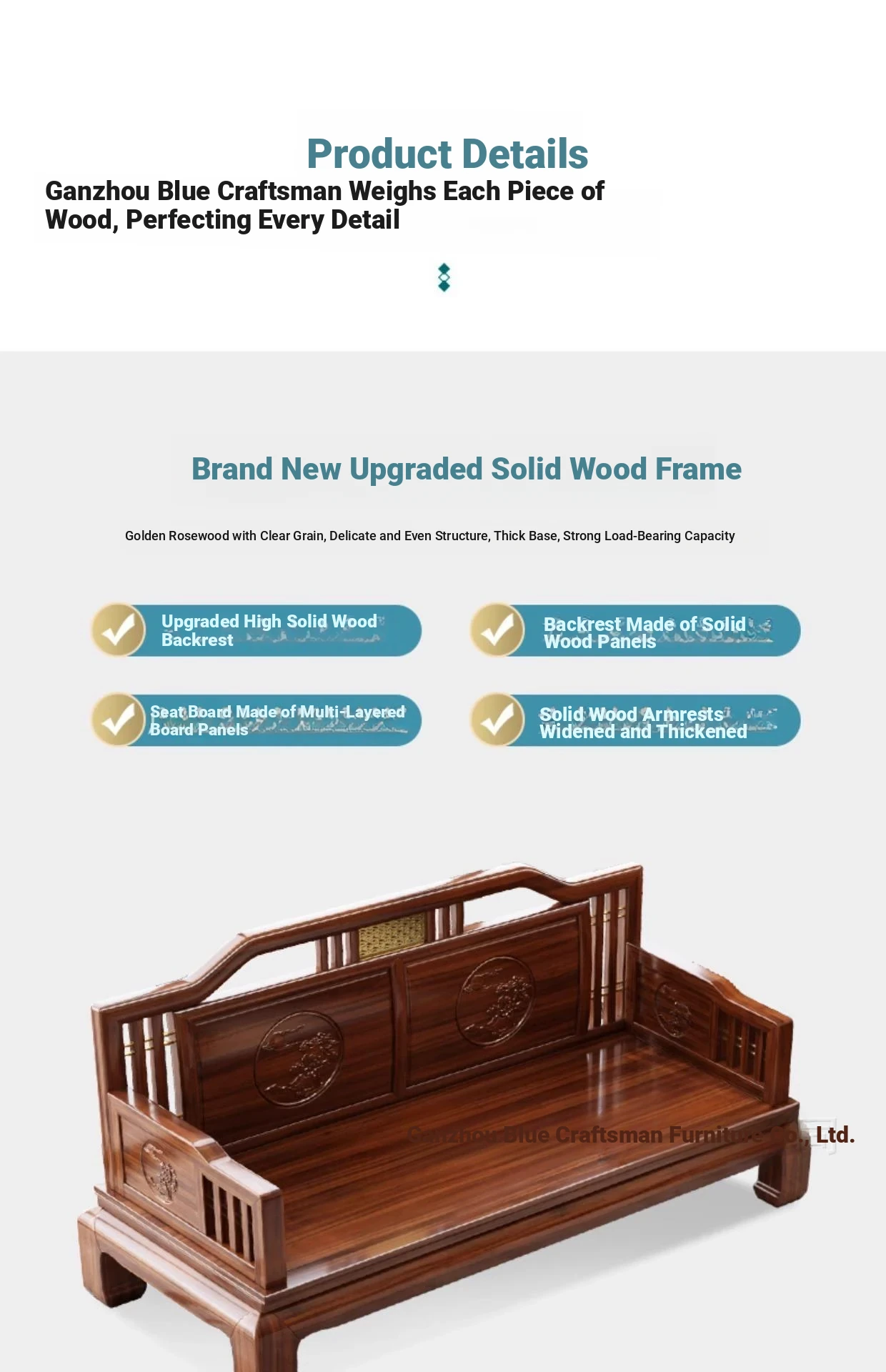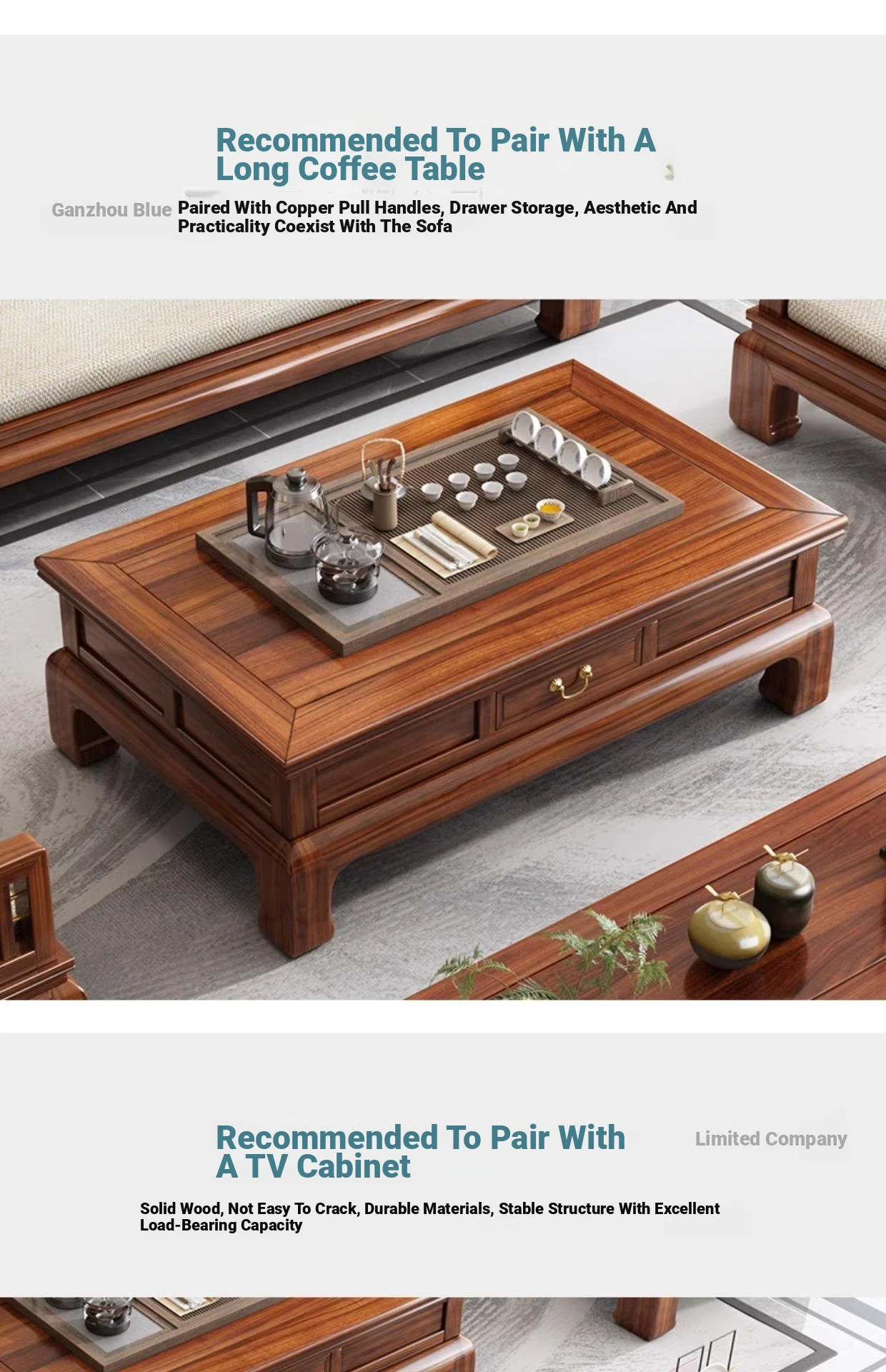 "Elegant New Chinese Style Antique Solid Wood Sofa Set - Classic Carved Design for Small Living Rooms, Perfect for Year-Round Comfort"