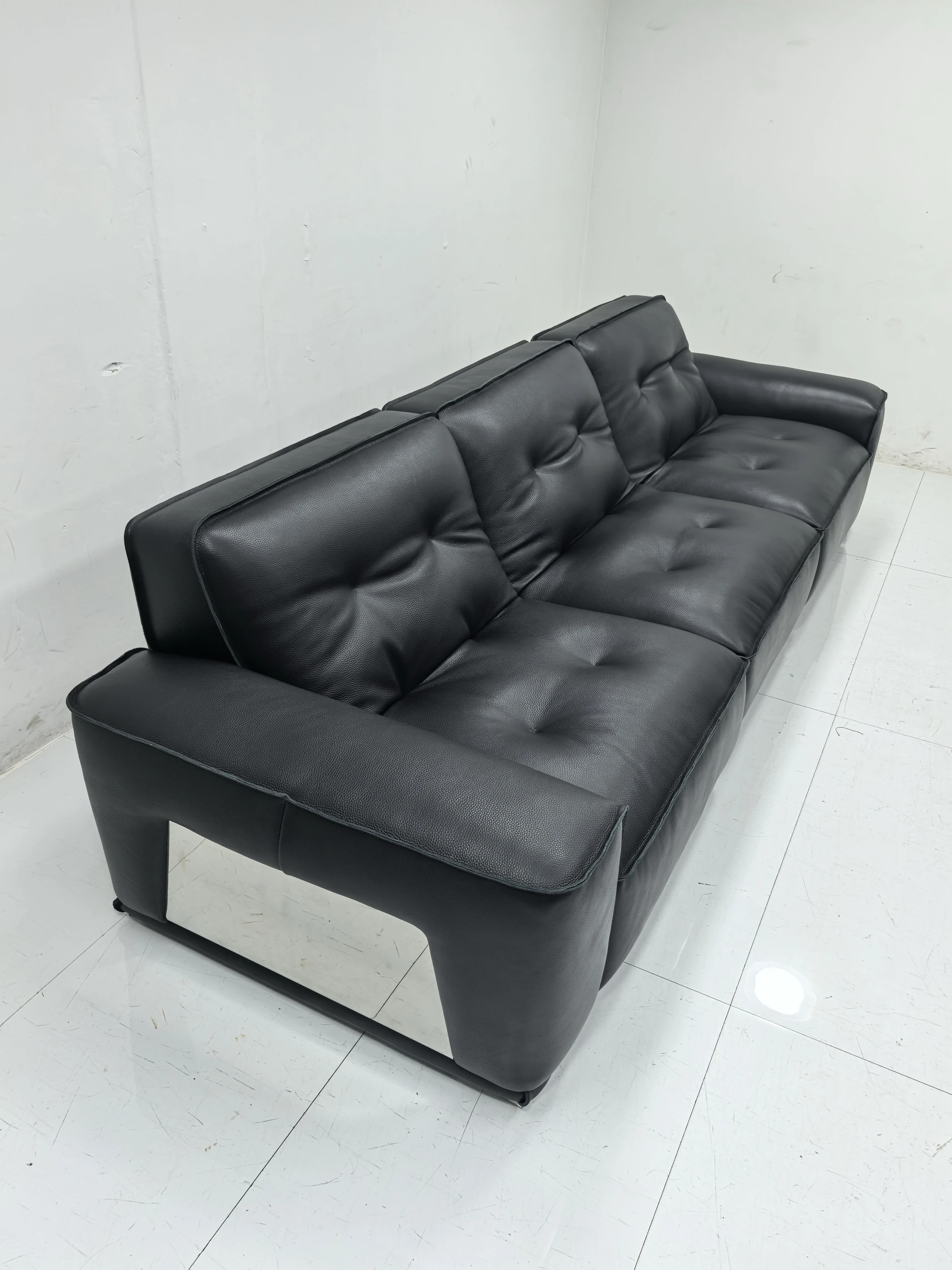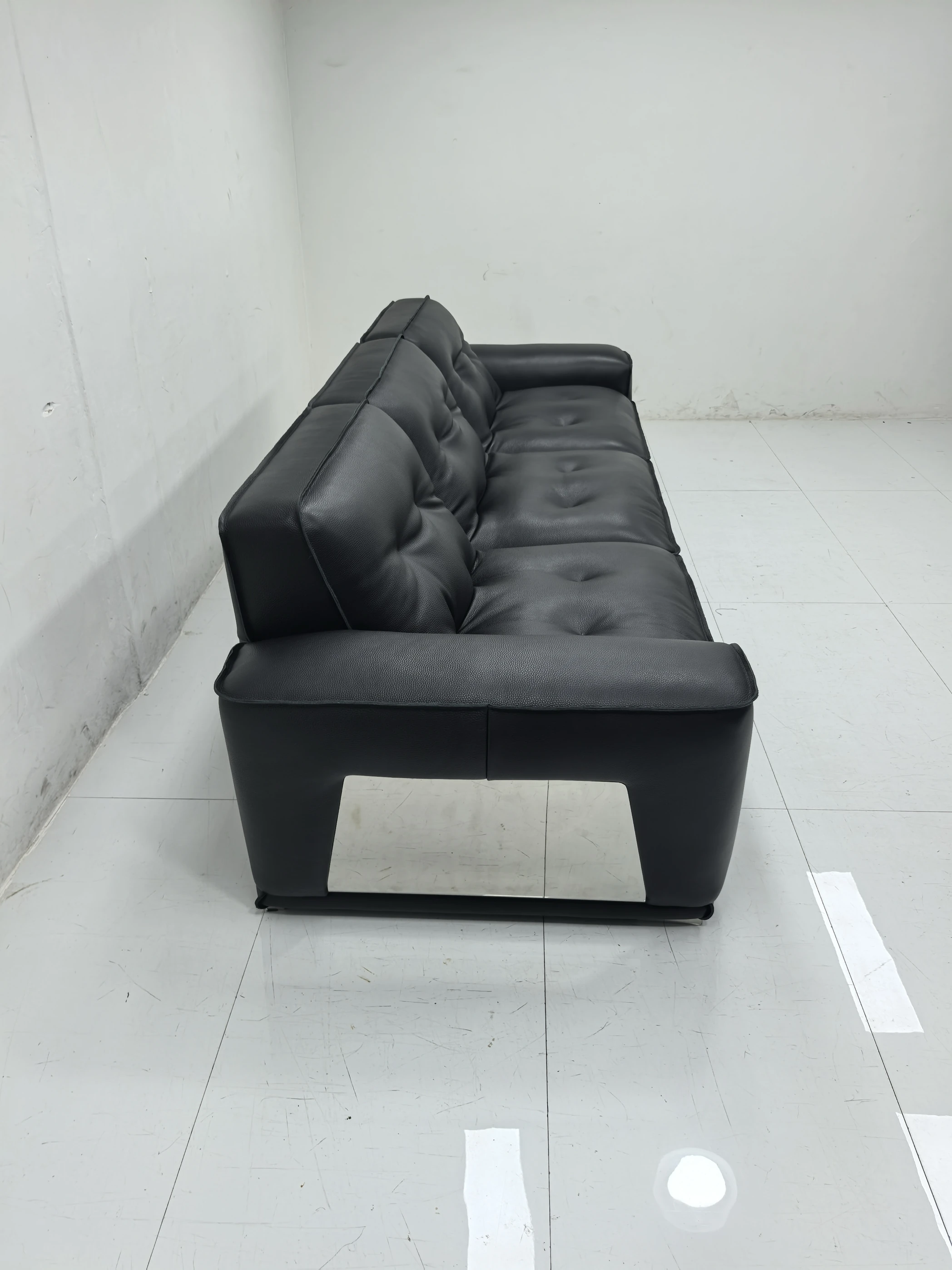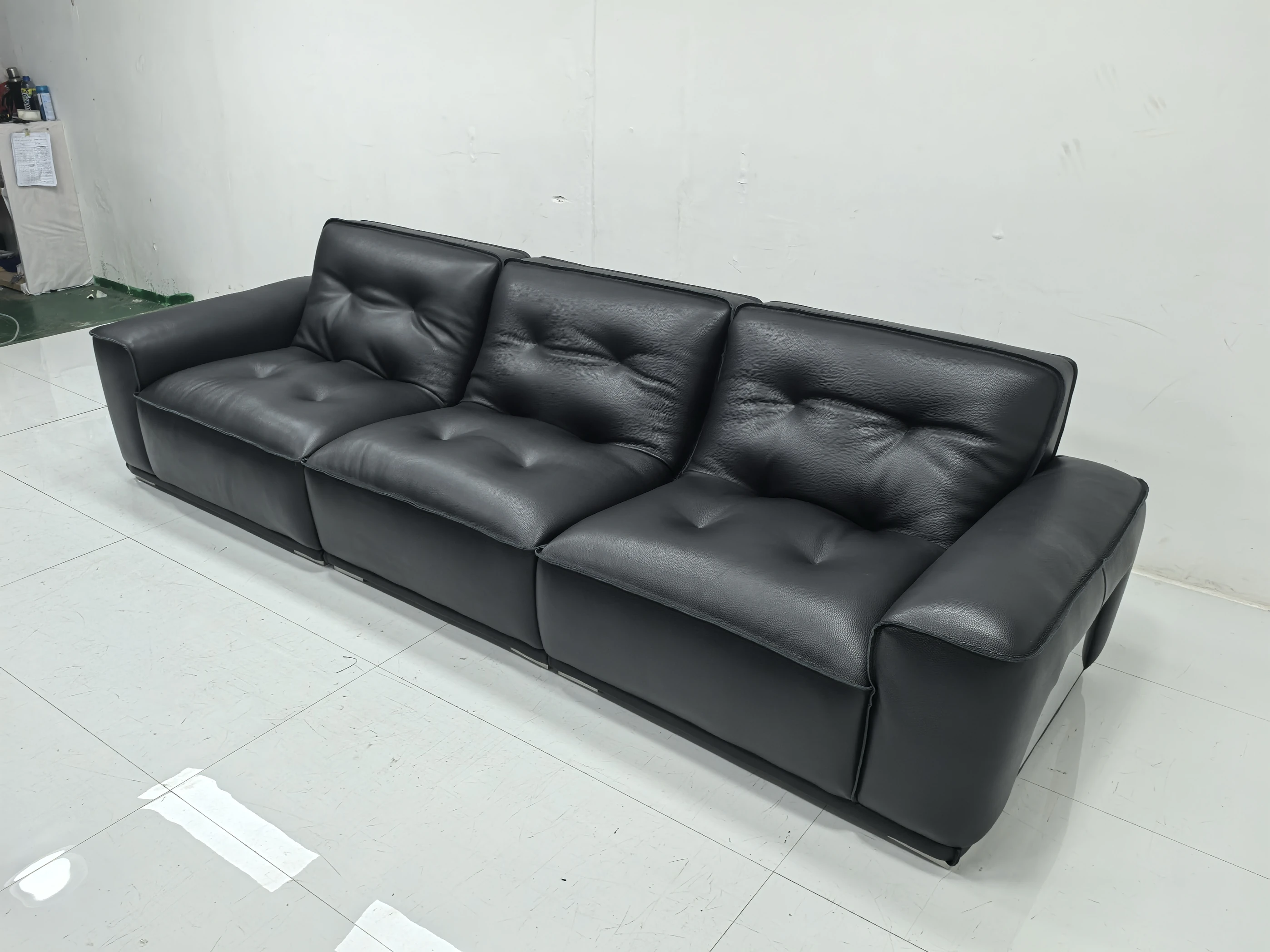 Foshan Italian Minimalist 2.0 Genuine Leather Sofa 2025 New Model - Black Diamond Living Room Sofa in Luxurious Black Leather