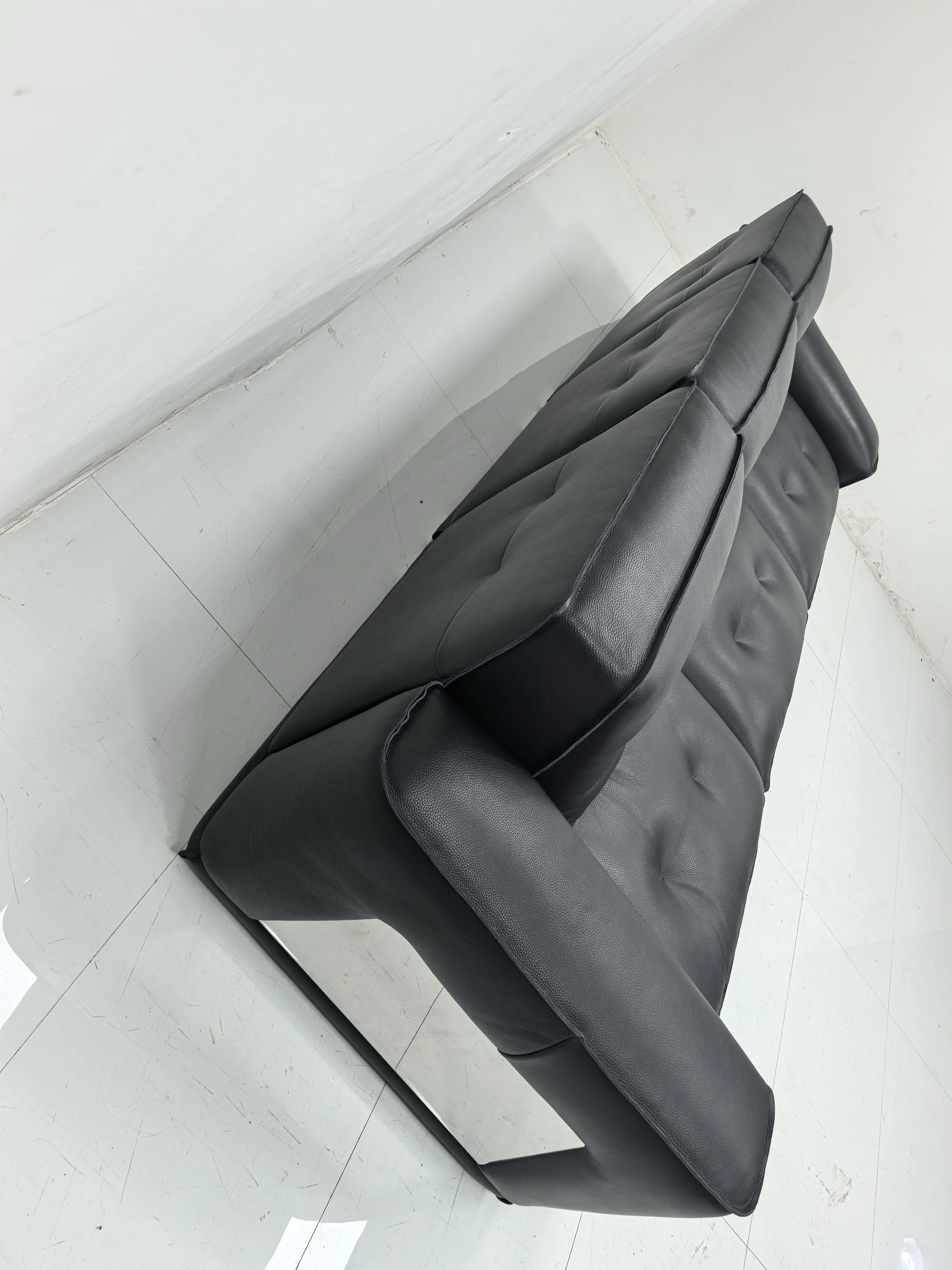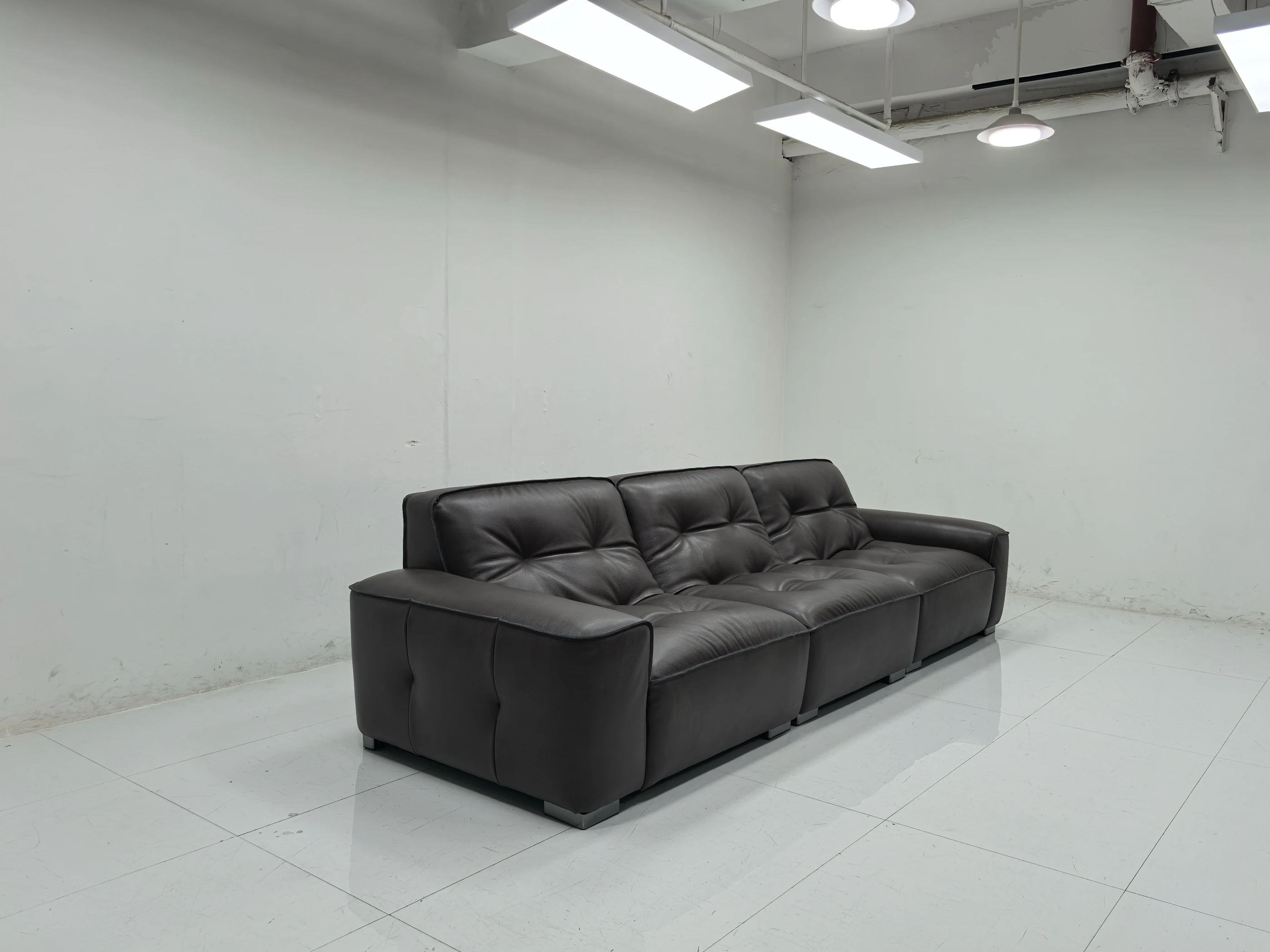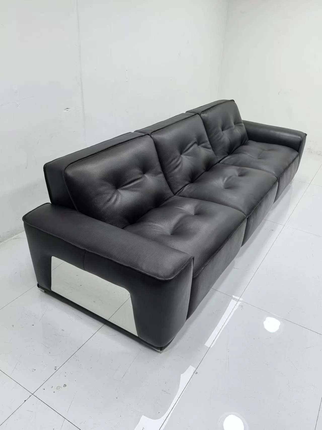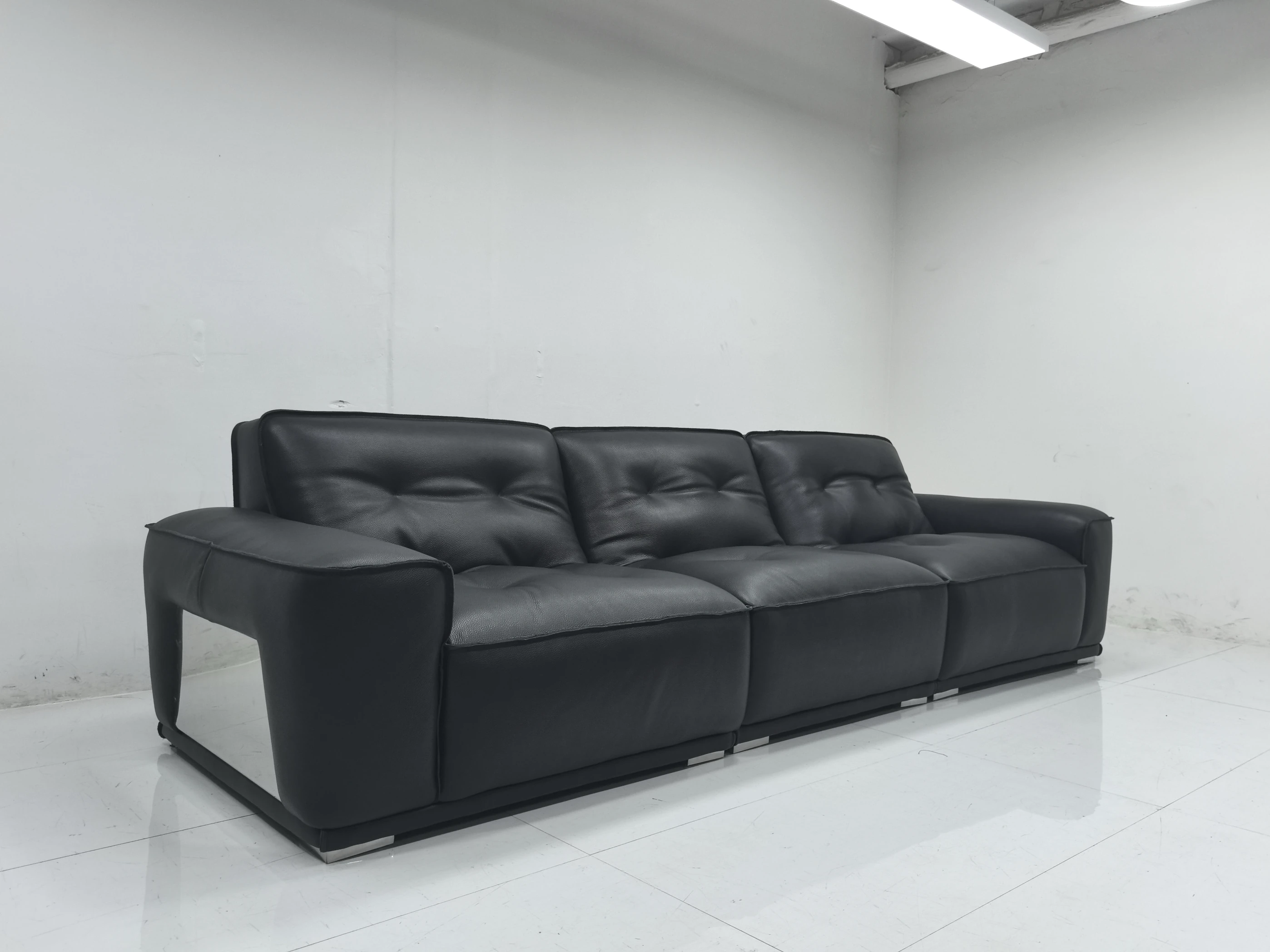 Foshan Italian Minimalist 2.0 Genuine Leather Sofa 2025 New Model - Black Diamond Living Room Sofa in Luxurious Black Leather