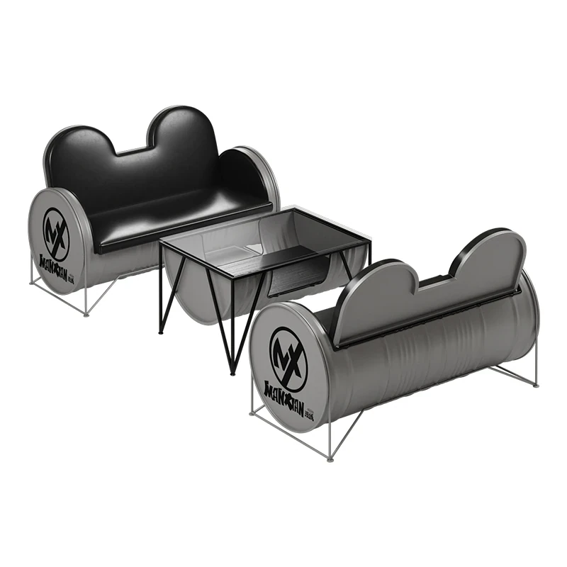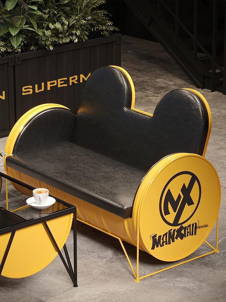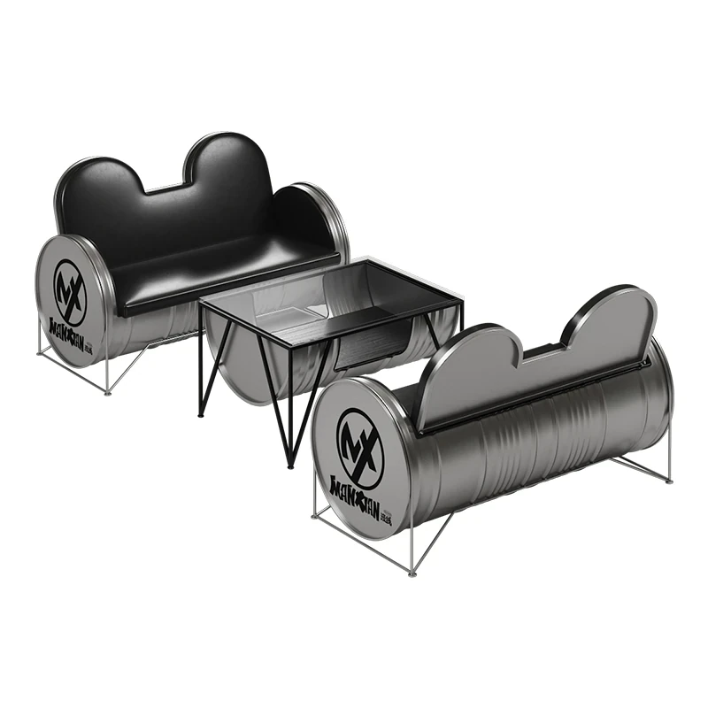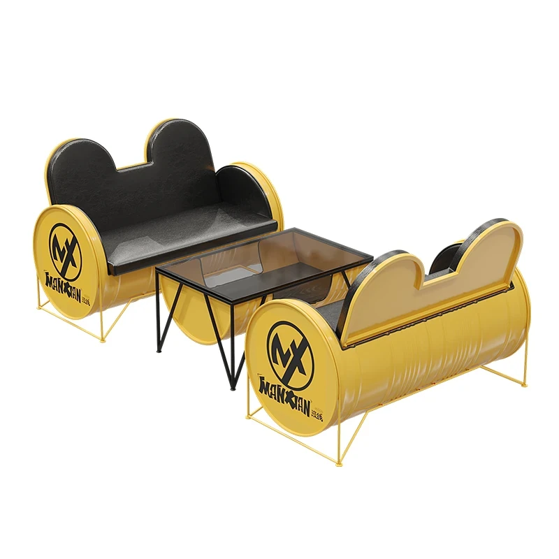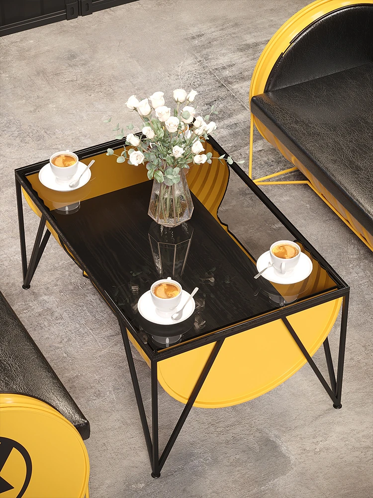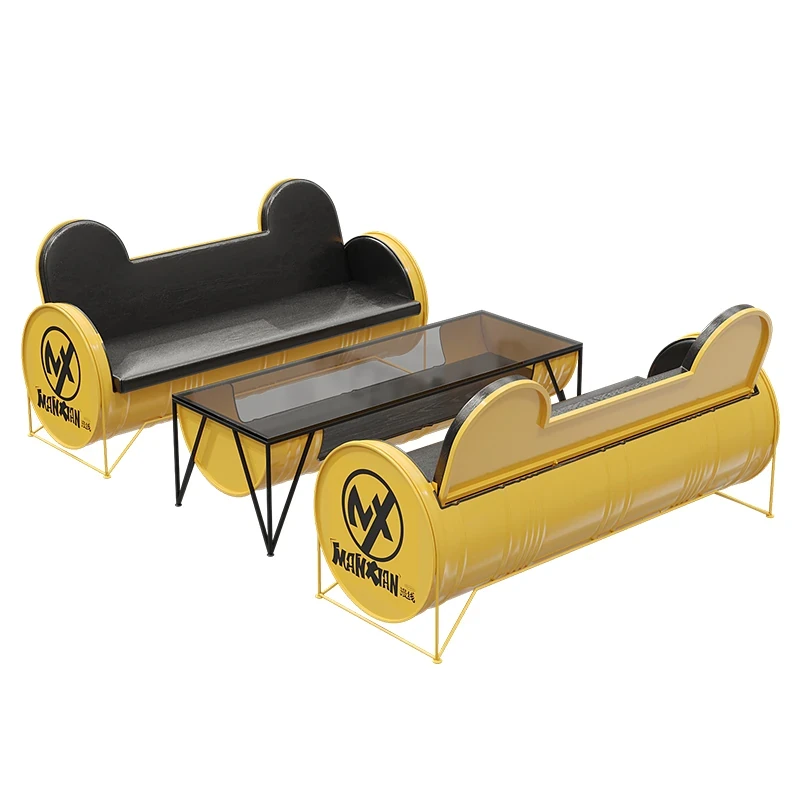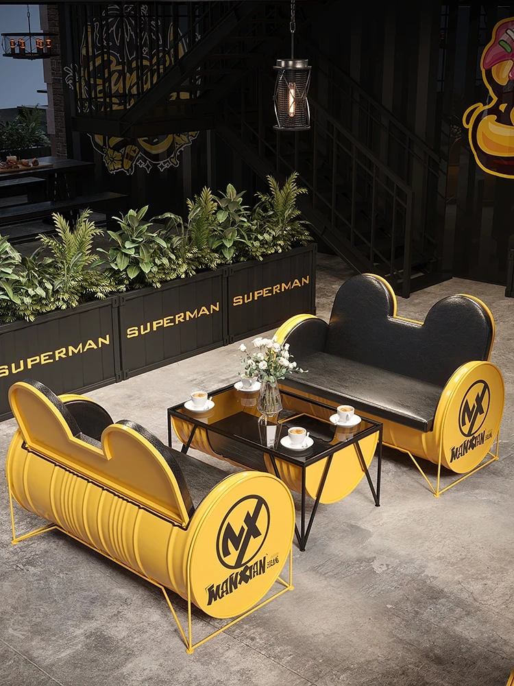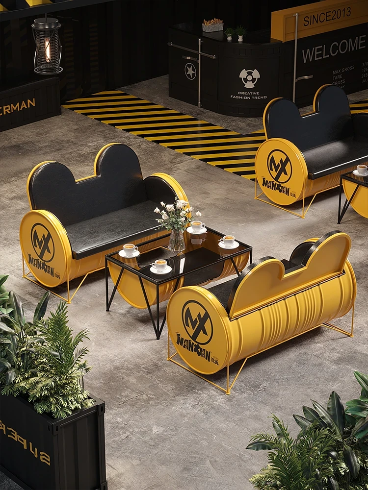 Industrial Style Booth Sofa Table Set - Creative Furniture Combo for Milk Tea Shops, Dessert Cafés, Clothing Stores, Bars, and Cat Cafés. Perfect for Modern Ambiances!