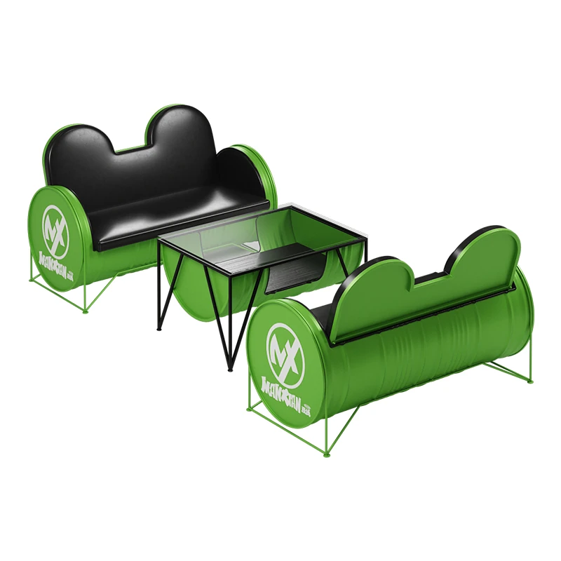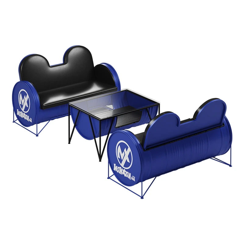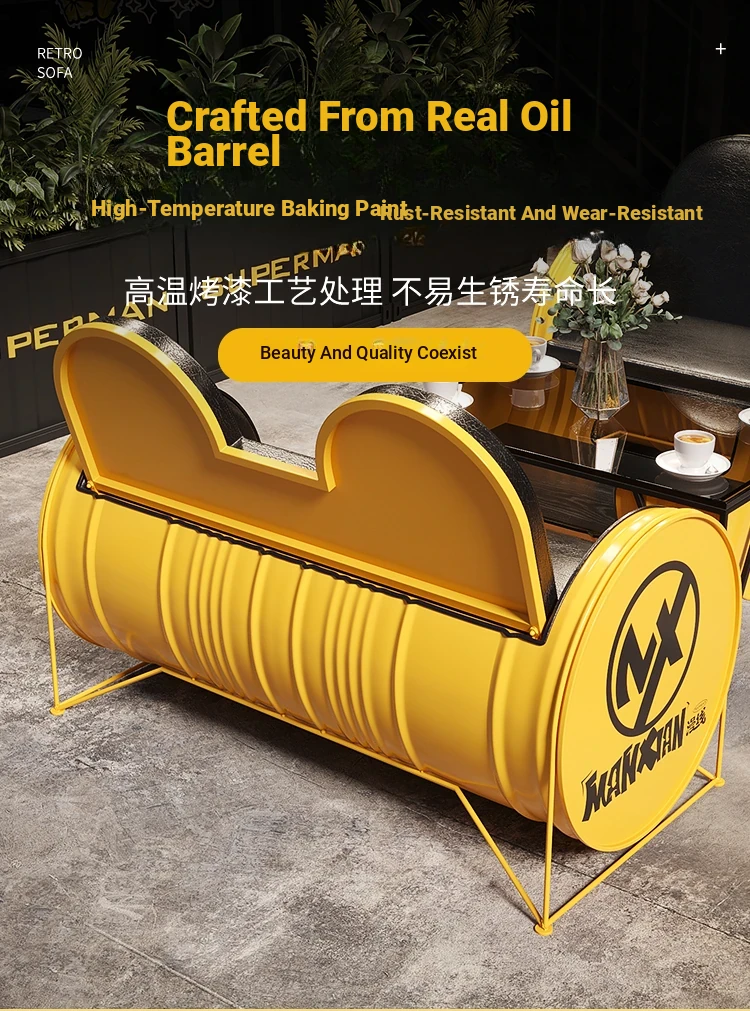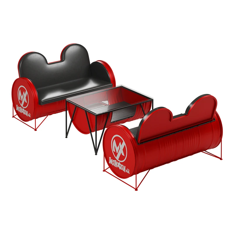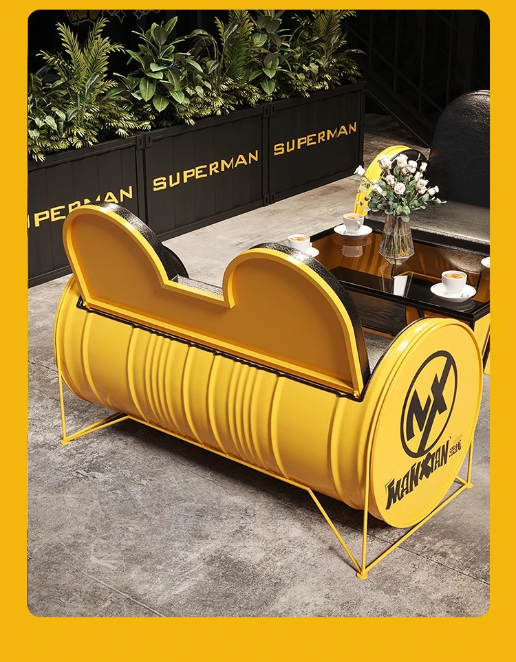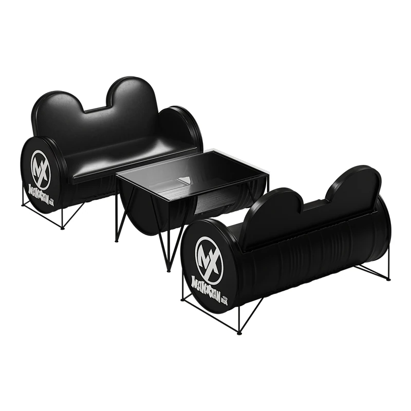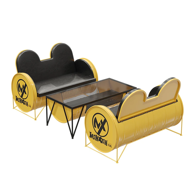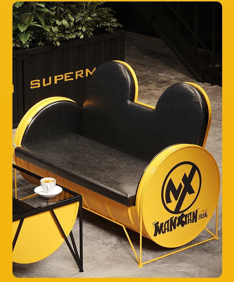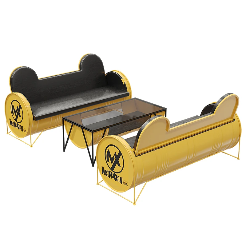Industrial Style Booth Sofa Table Set - Creative Furniture Combo for Milk Tea Shops, Dessert Cafés, Clothing Stores, Bars, and Cat Cafés. Perfect for Modern Ambiances!