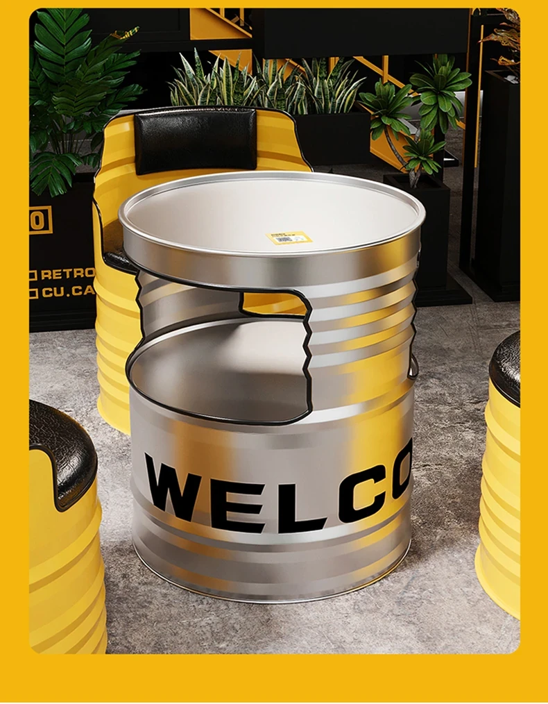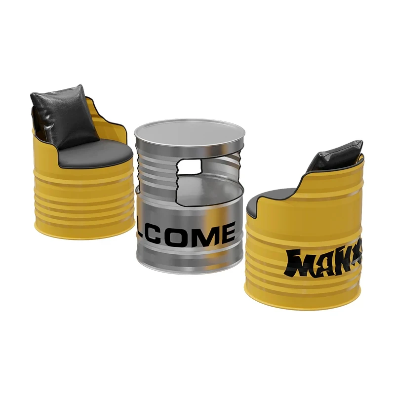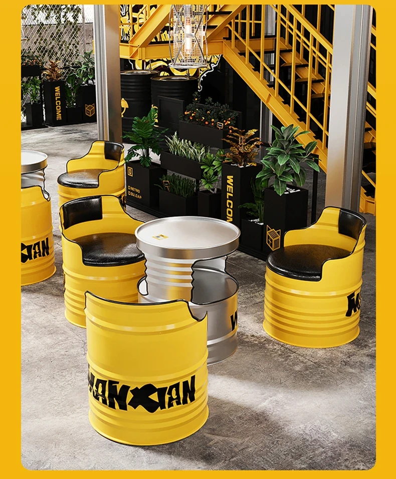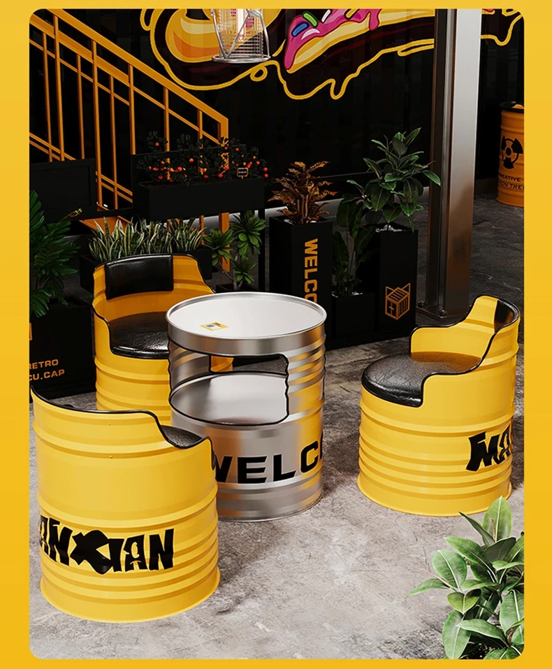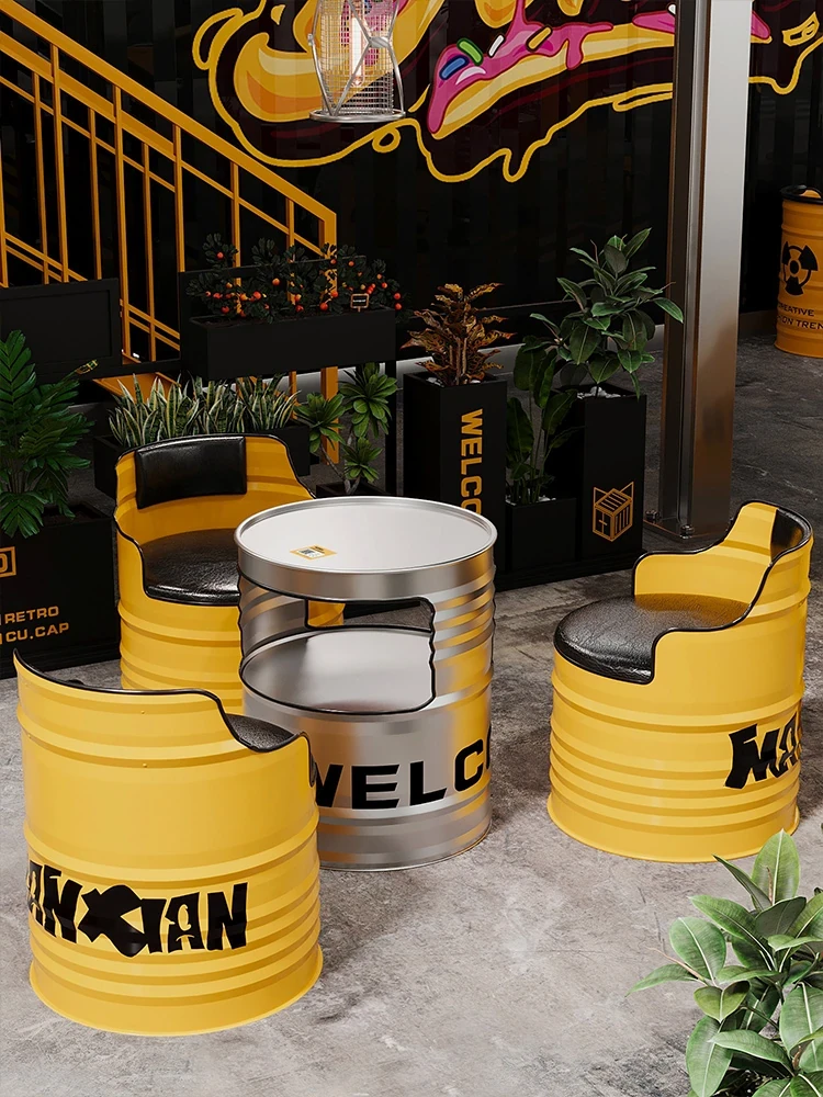 Industrial Style Oil Drum Sofa Set - Trendy Creative Outdoor Table and Chair Combination for Shops, Bars, and Cafés - Metal Booth Seating for a Unique Atmosphere