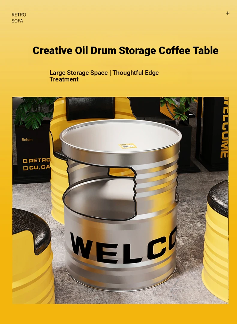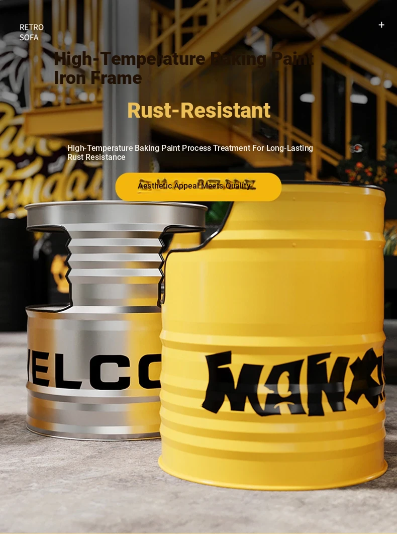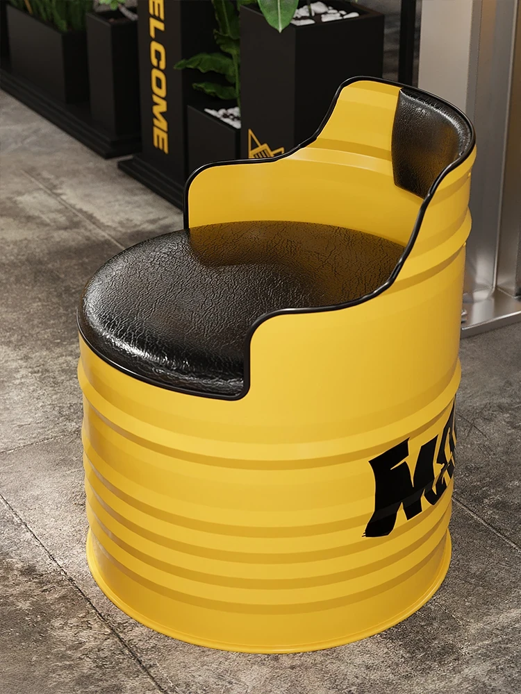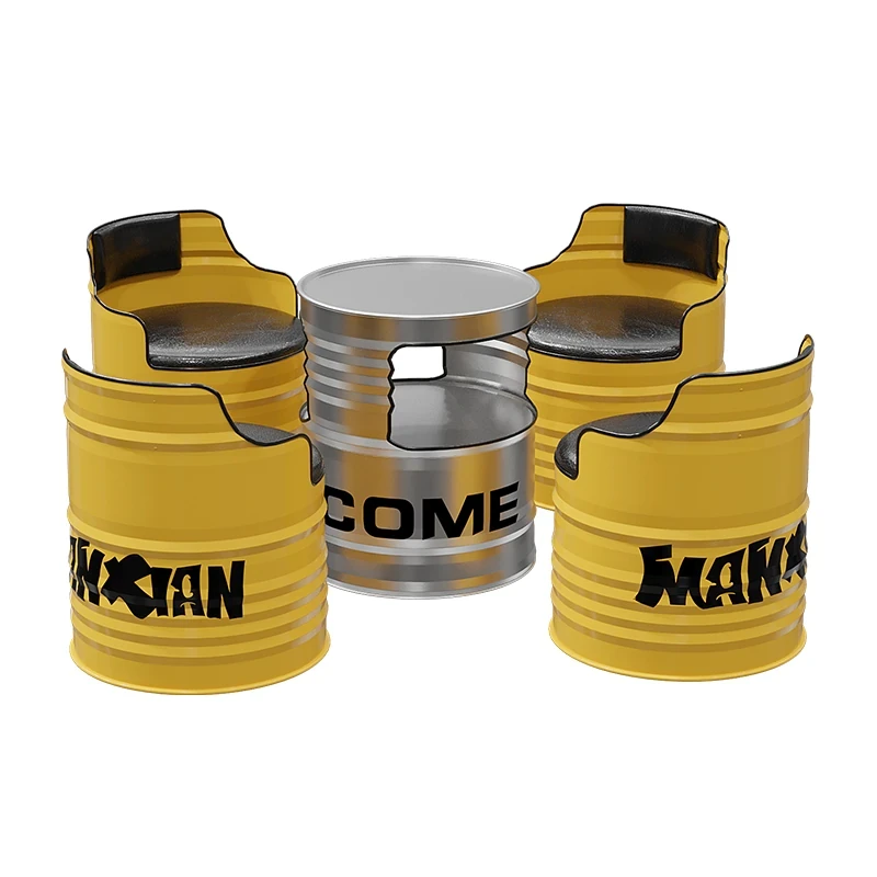 Industrial Style Oil Drum Sofa Set - Trendy Creative Outdoor Table and Chair Combination for Shops, Bars, and Cafés - Metal Booth Seating for a Unique Atmosphere