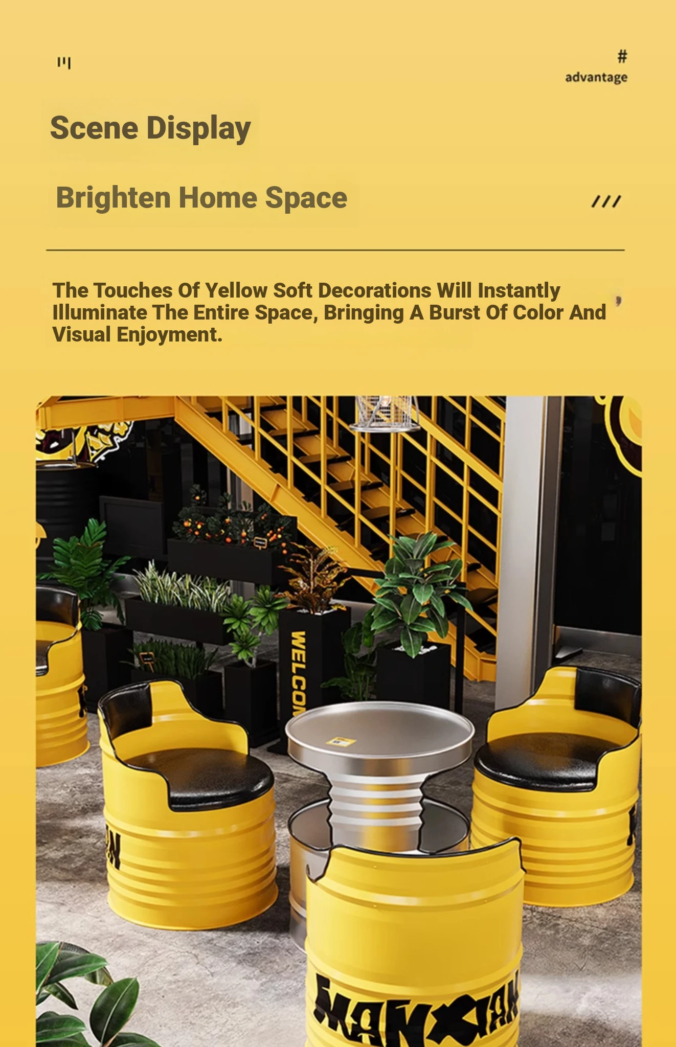 Yellow combination: a table of four chairs