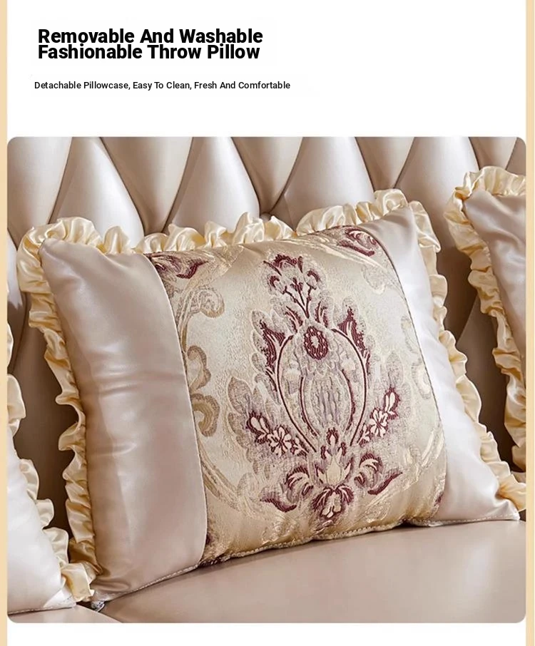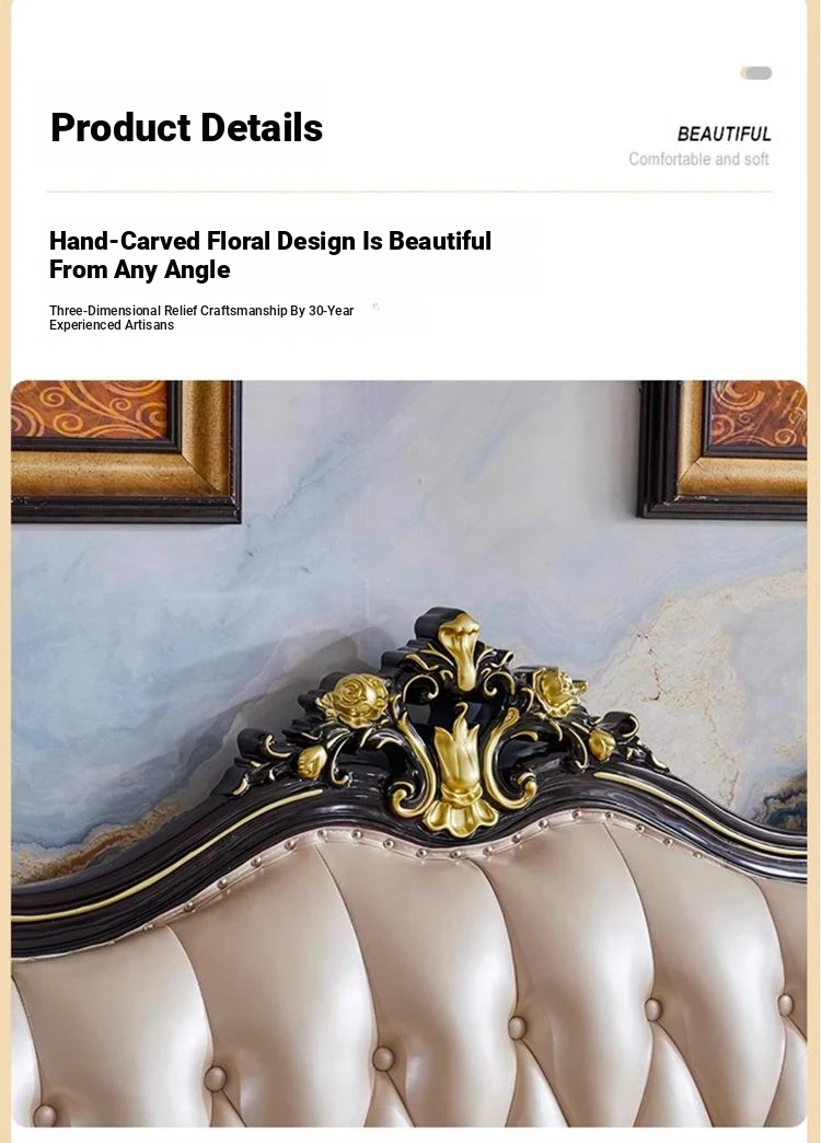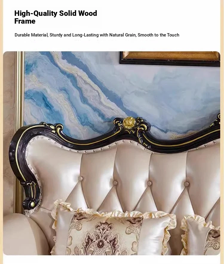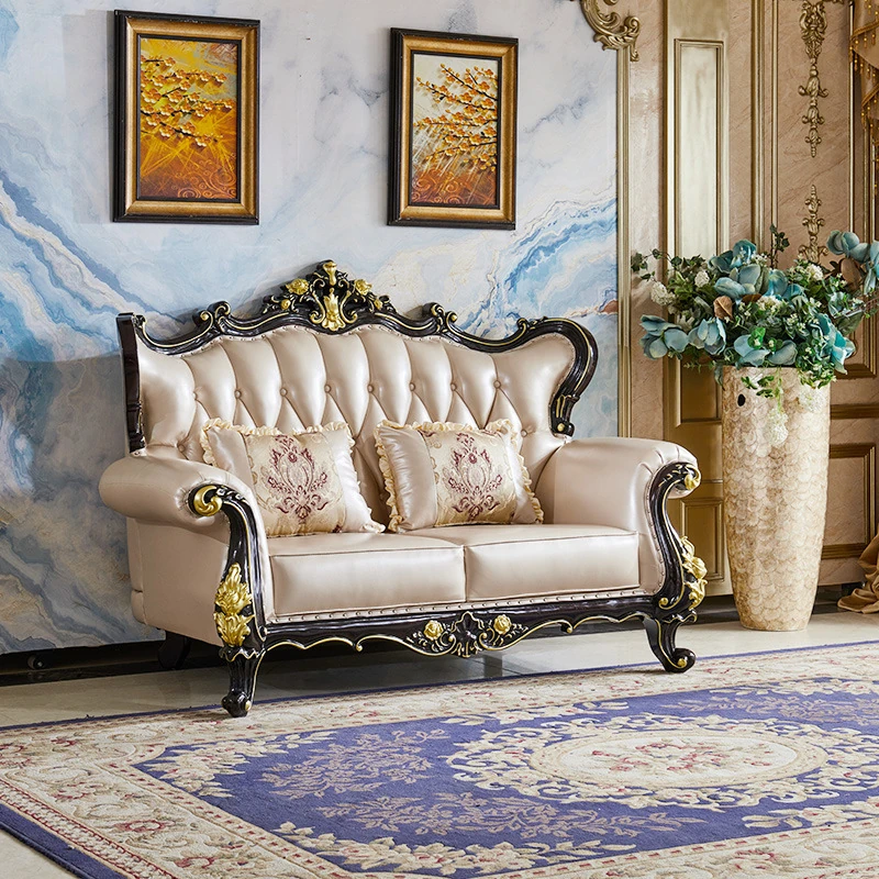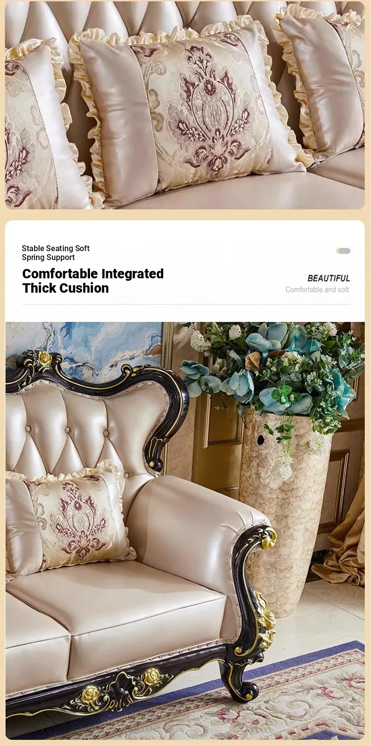 Luxurious European Leather Sofa Set for Villa - Exquisite Solid Wood Carved Dark Ebony Three-Seater Sofa for Elegant Living Rooms