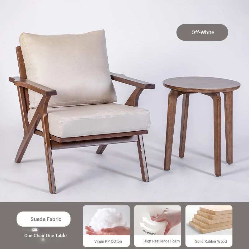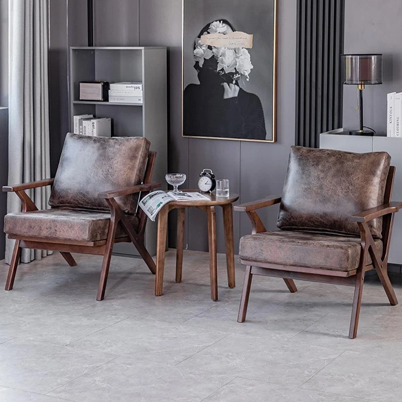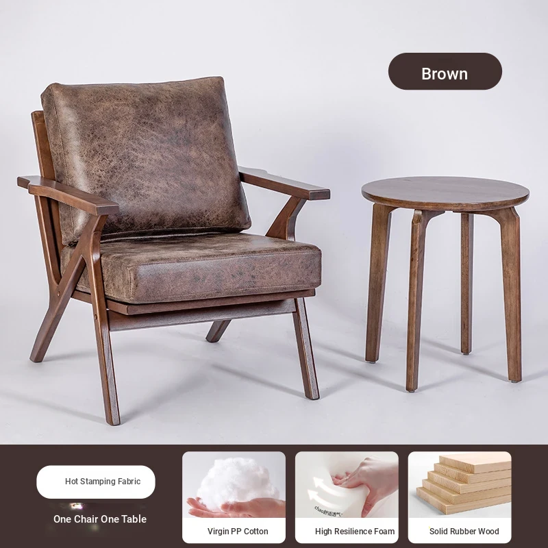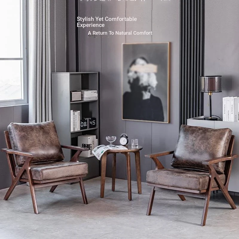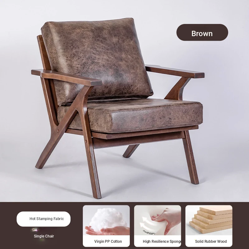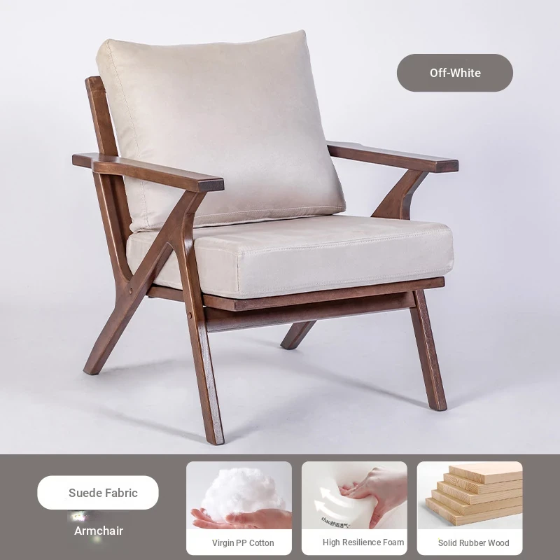 Nordic Minimalist Solid Wood Chair for Home - Stylish Living Room and Balcony Armchair, Walnut Single Sofa for Relaxation