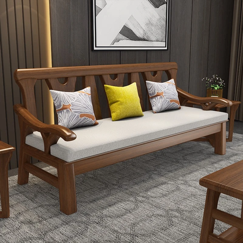 Nordic New Chinese Style Solid Wood Sofa Set for Living Room - Modern Minimalist Design, Space-Saving for Small Apartments, Versatile Oak Three-Seater for All Seasons