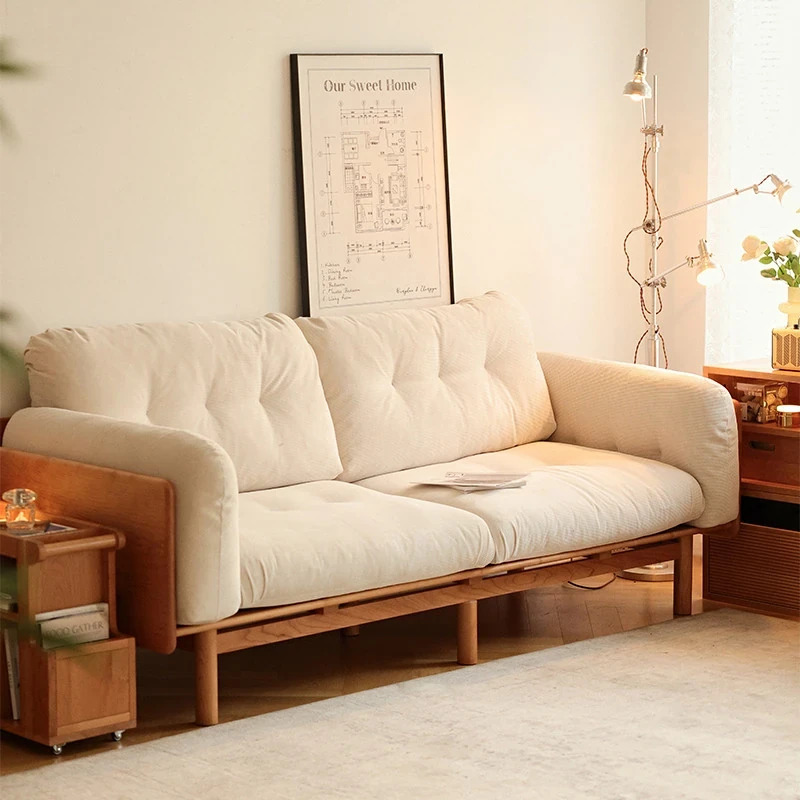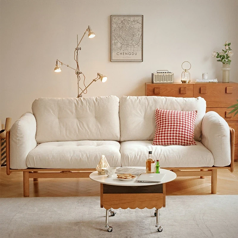 Nordic Solid Wood Sofa - Japanese Minimalist Style, Compact Design for Small Living Rooms, Removable and Washable Corduroy Fabric, 3-Seater Sofa Set