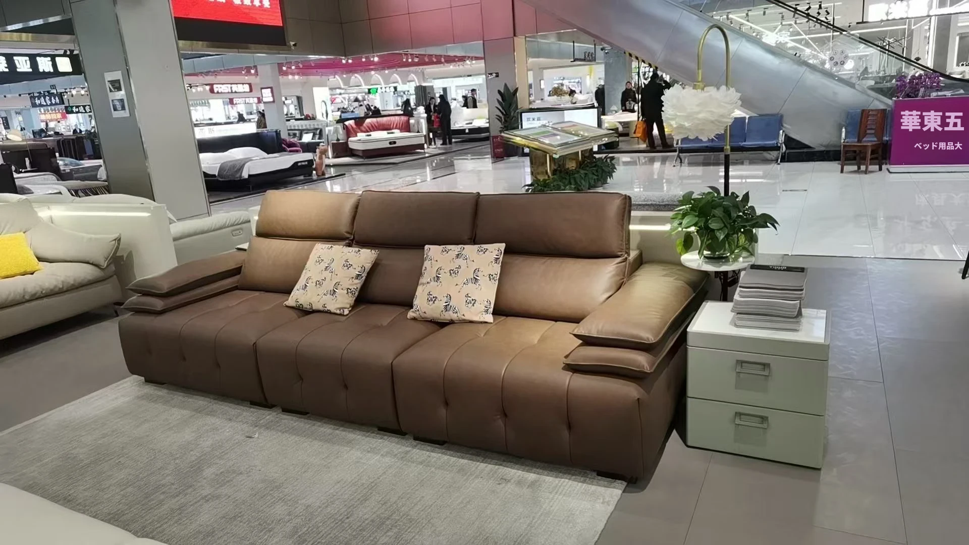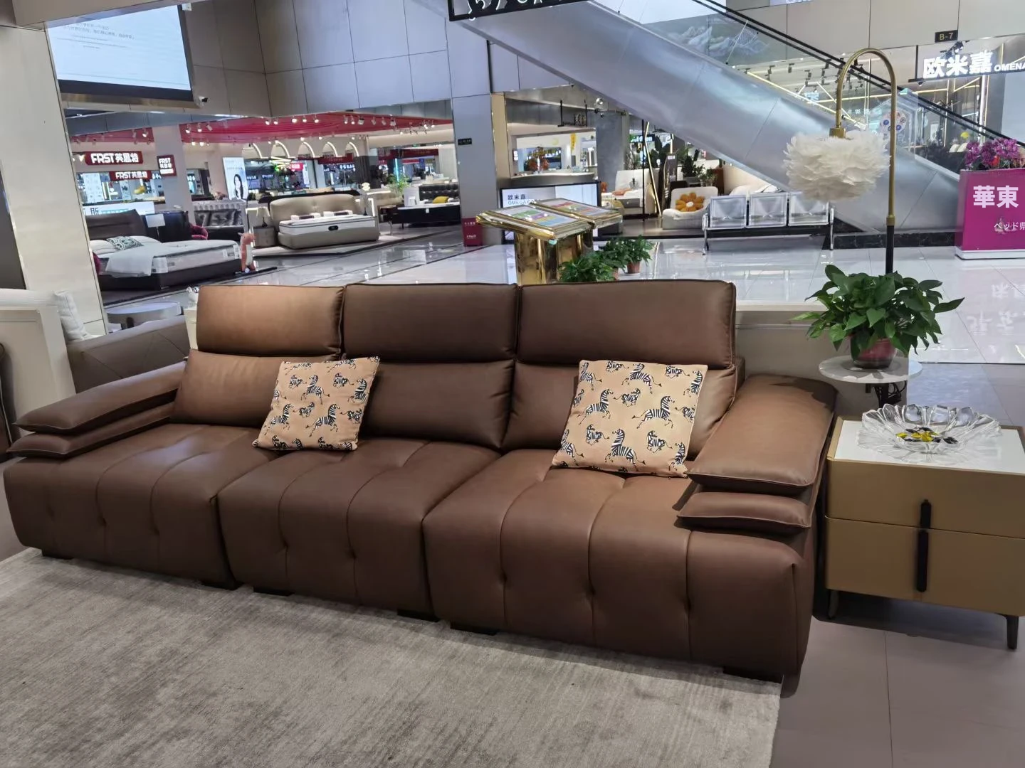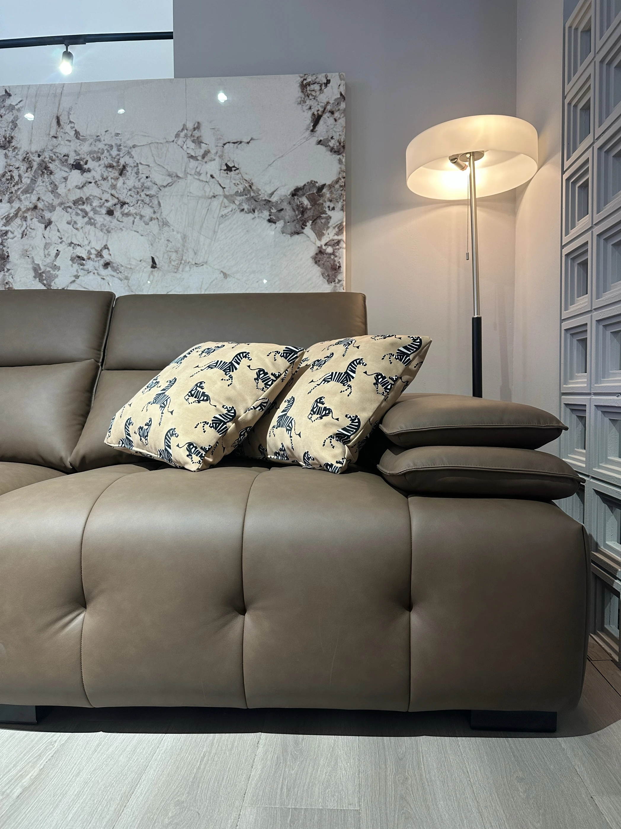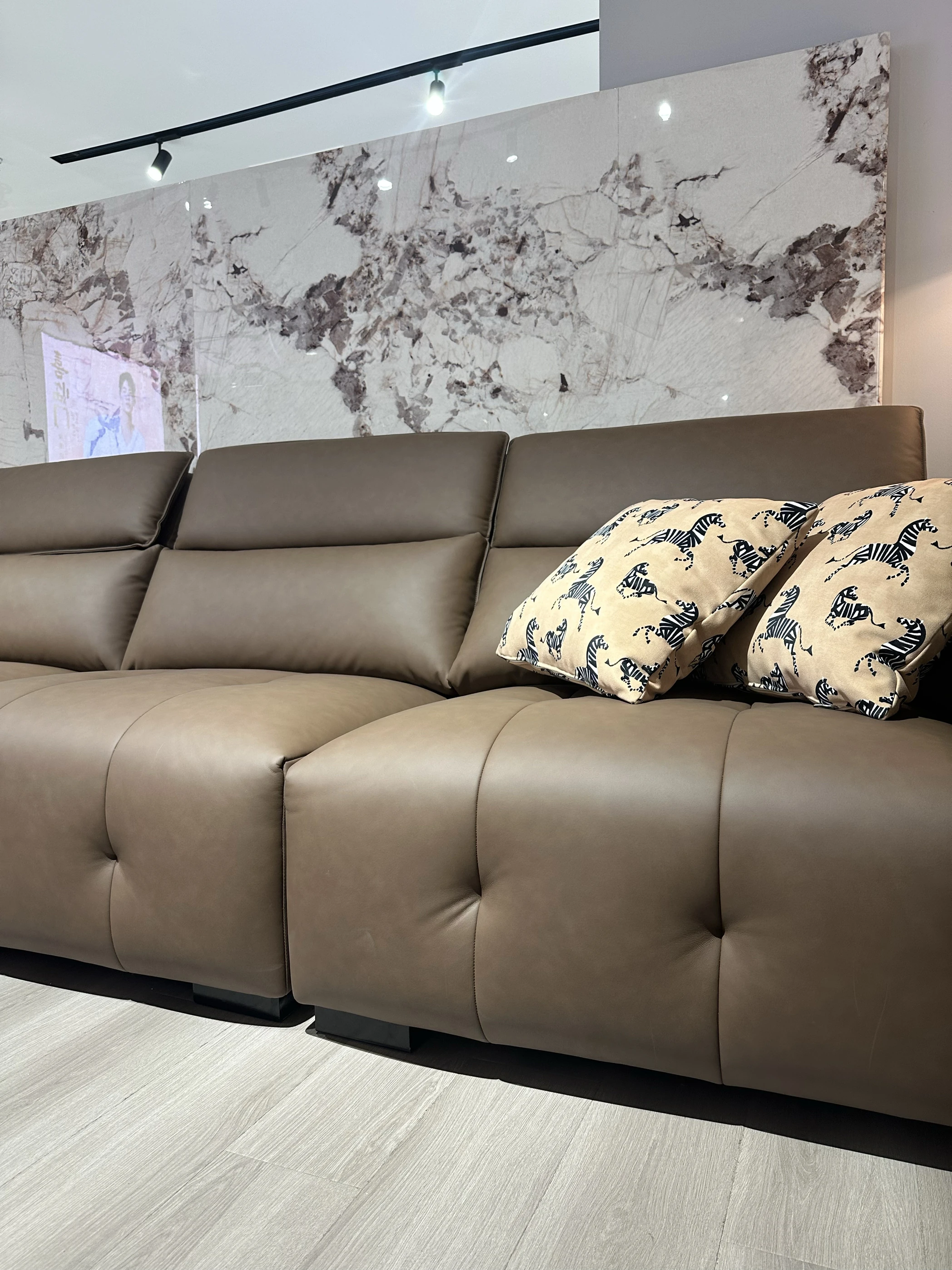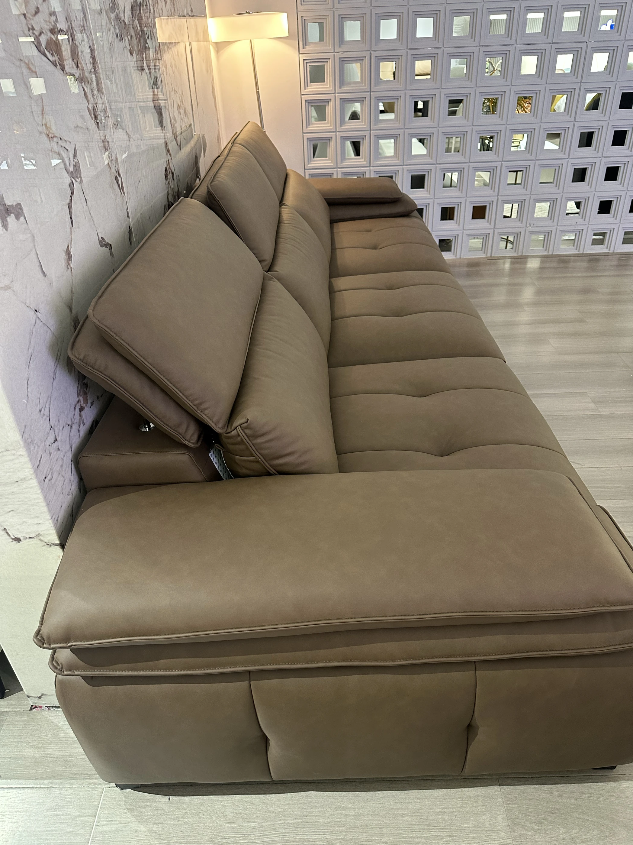 調整可能なヘッドレスト付き3人掛けソファ - 小型リビングにぴったり!ダークブラウンのストレートデザインで、スタイリッシュで快適な空間を演出。あなたのリビングに最適な選択です!
