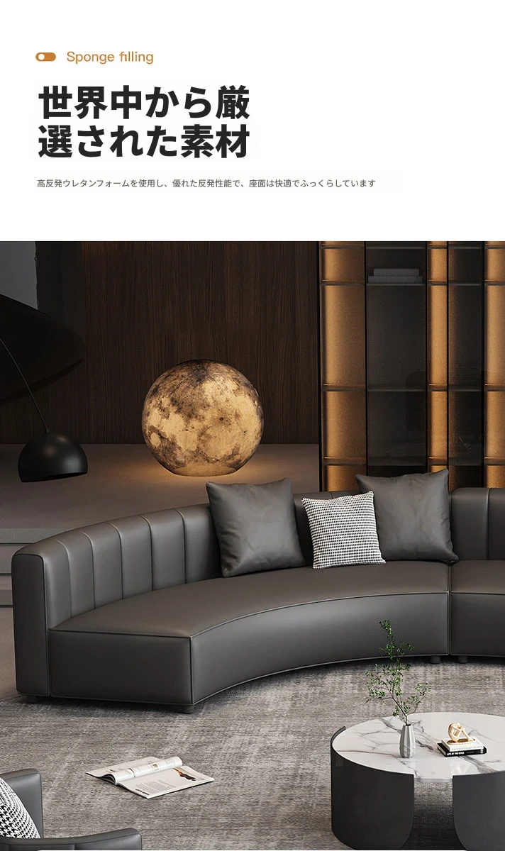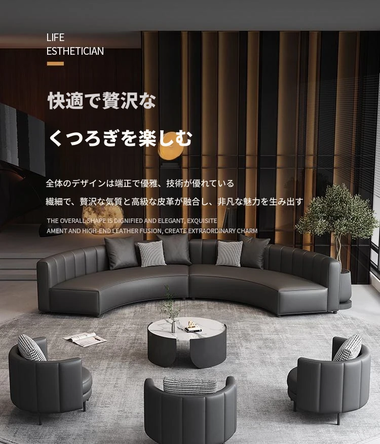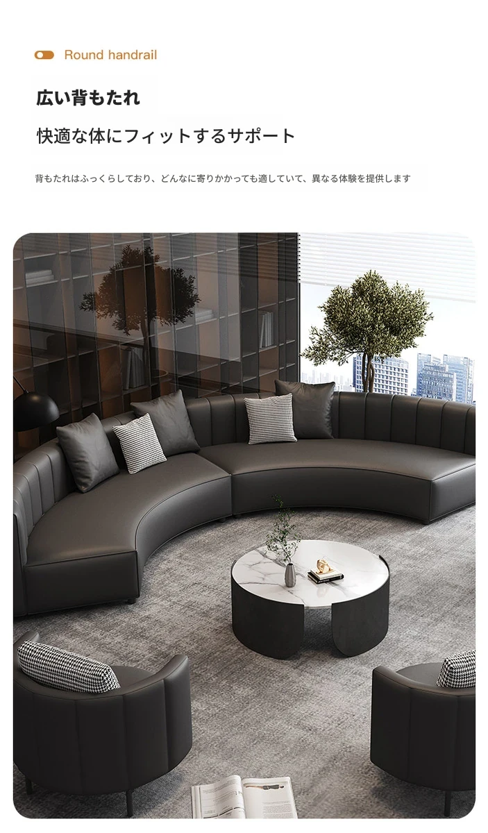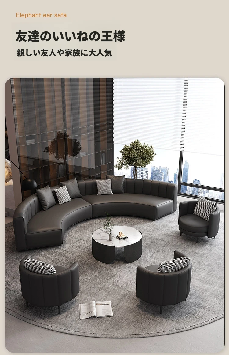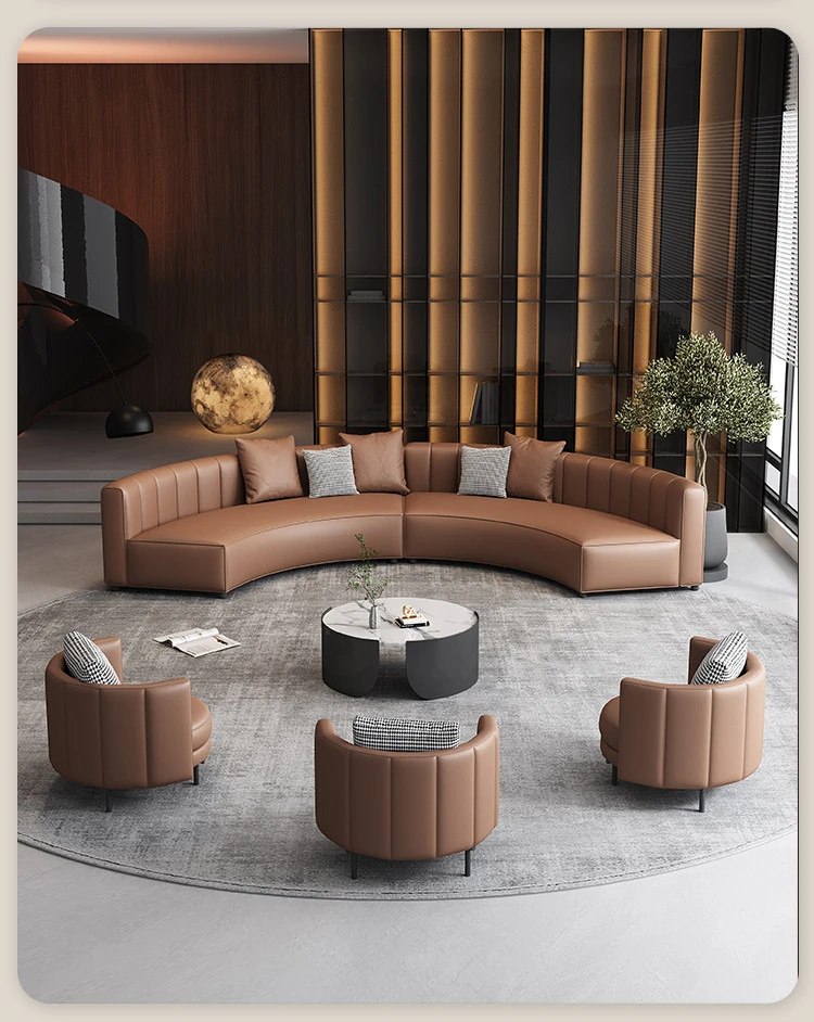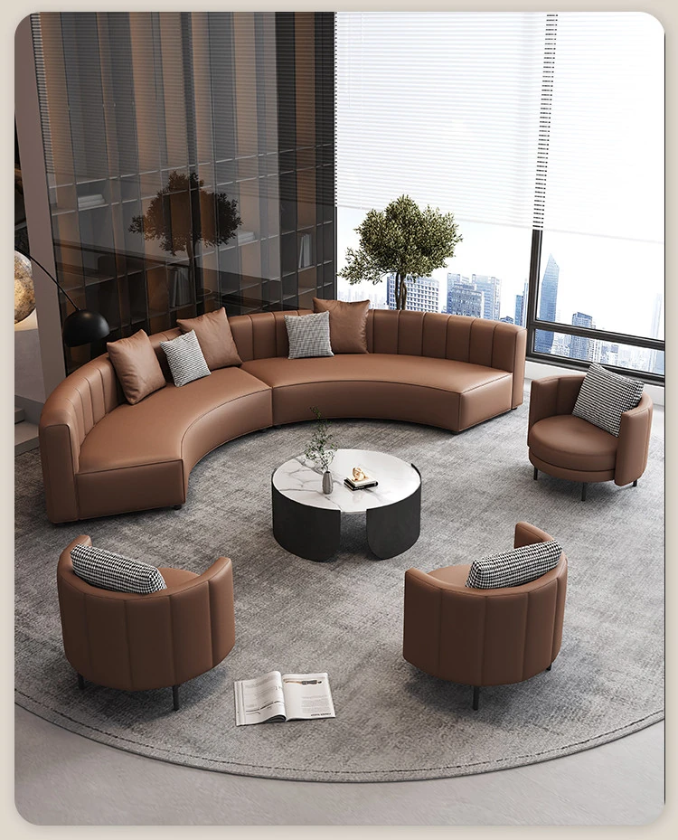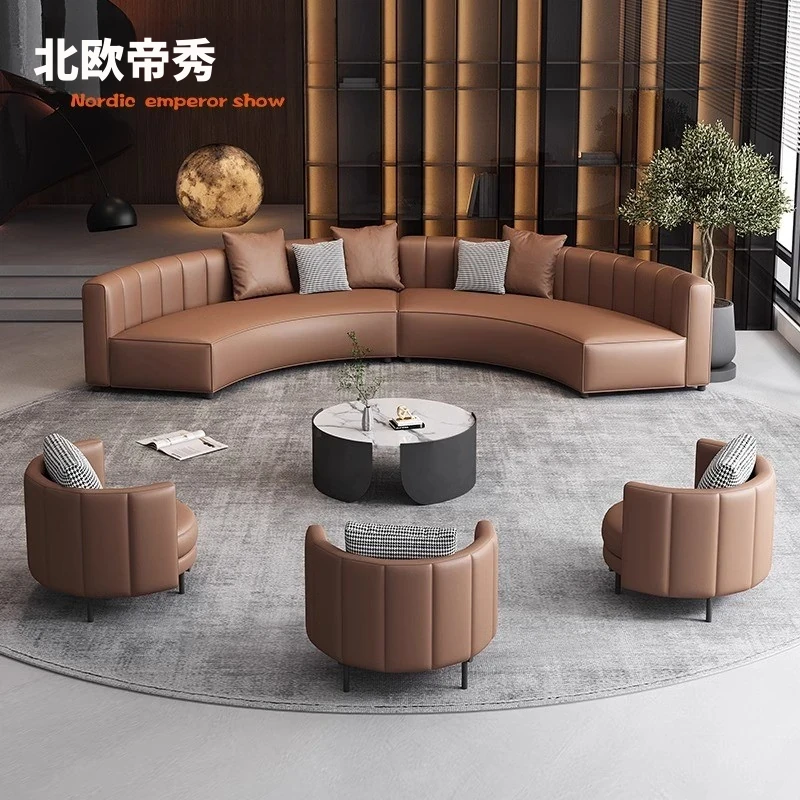 ホテルロビーに最適な曲線デザインのソファセット!ビジネスミーティングや VIP ルームにぴったりのエレガントな接客スペースを演出。洗練された雰囲気で、商談を成功に導く完璧なアイテムです!