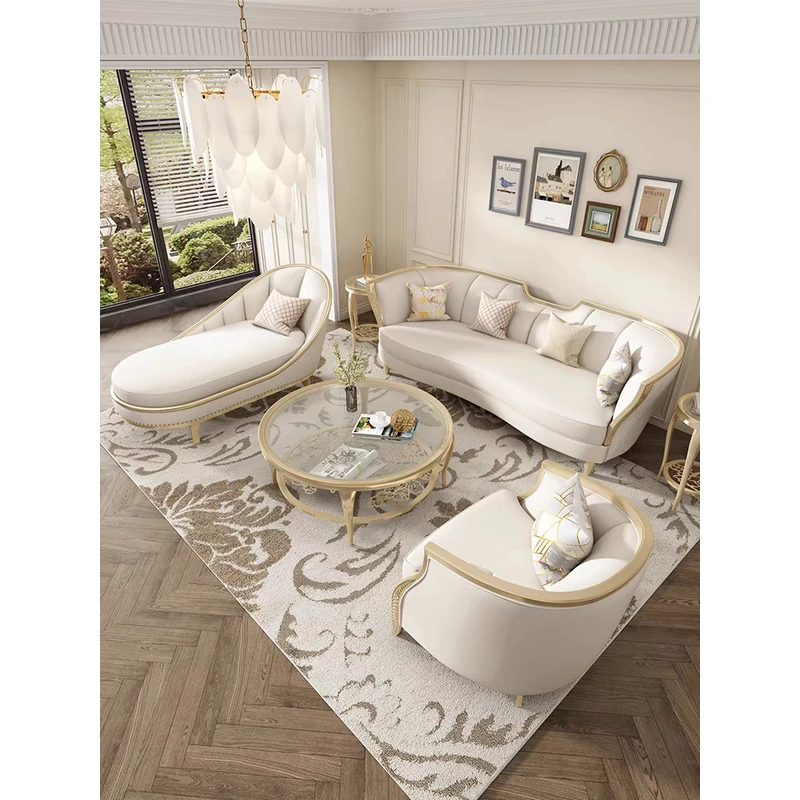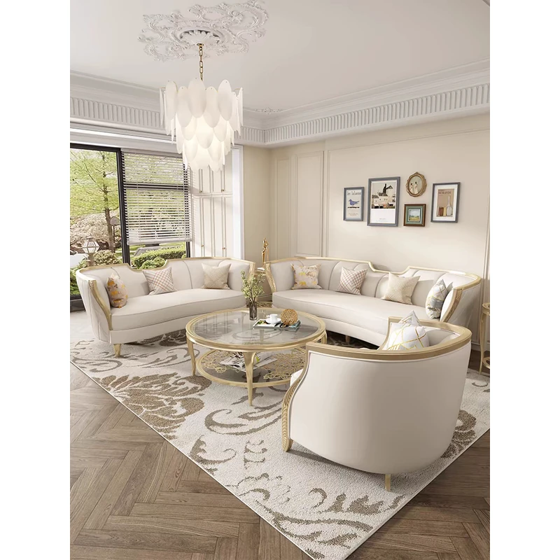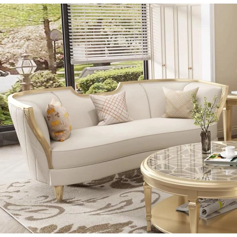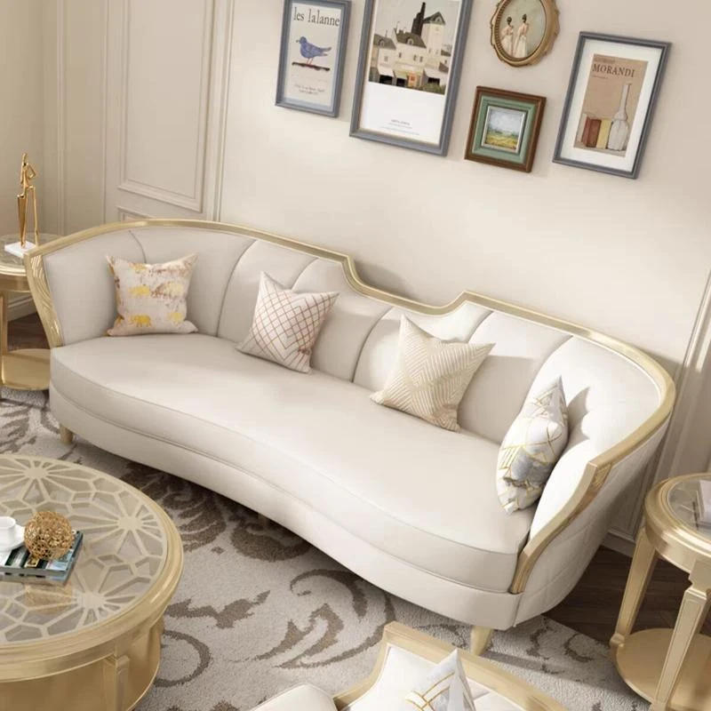 アメリカンスタイルの無垢材ソファ フレンチシックなラグジュアリーリビング 高級感あふれるシンプルなアーチ型ソファ アデラソファ クラシックなクリーム風デザインで、洗練された空間を演出します。