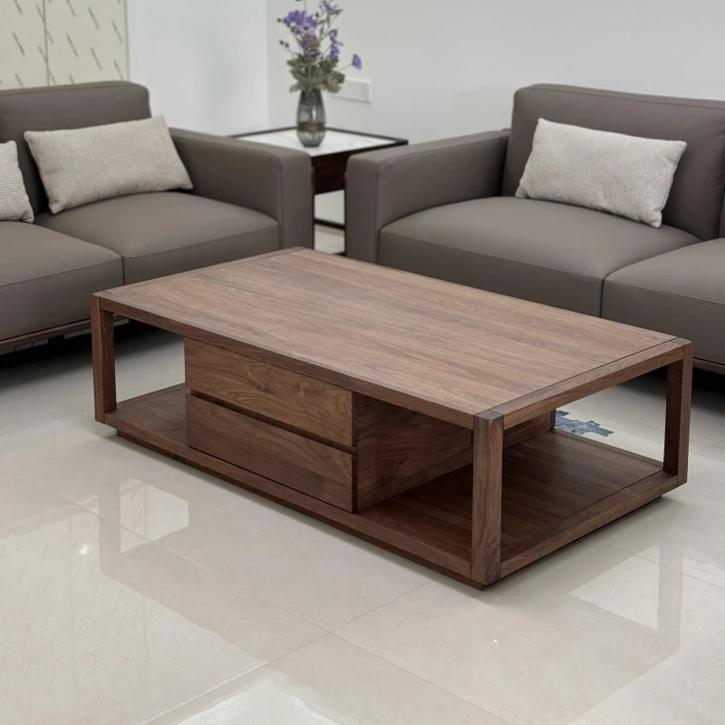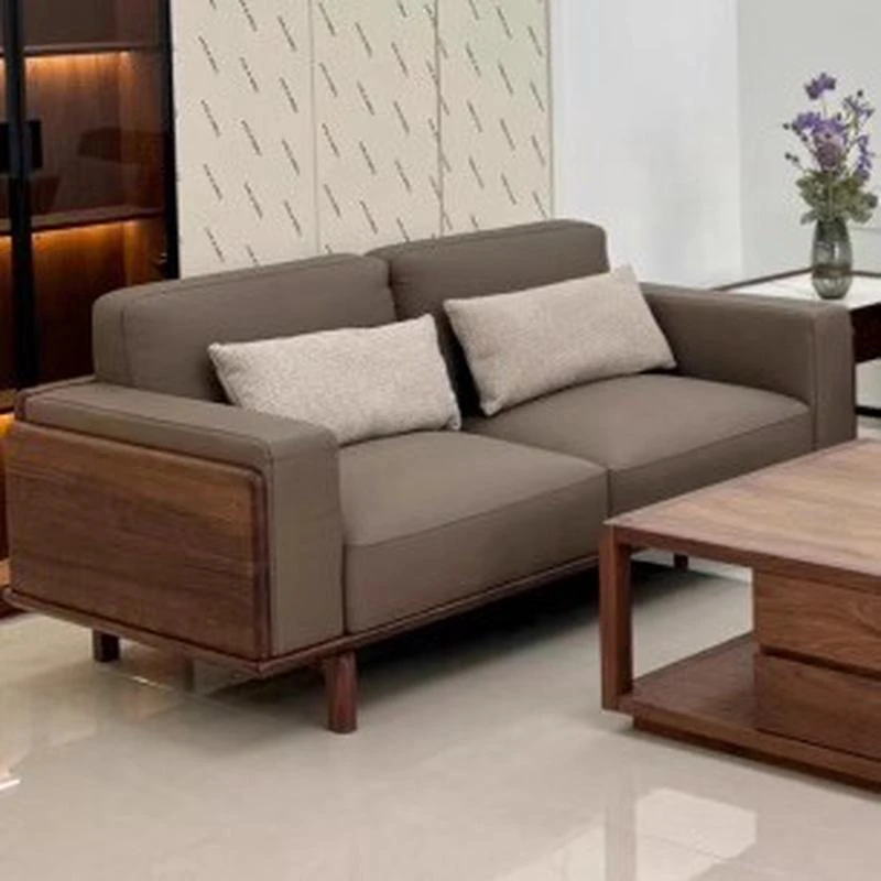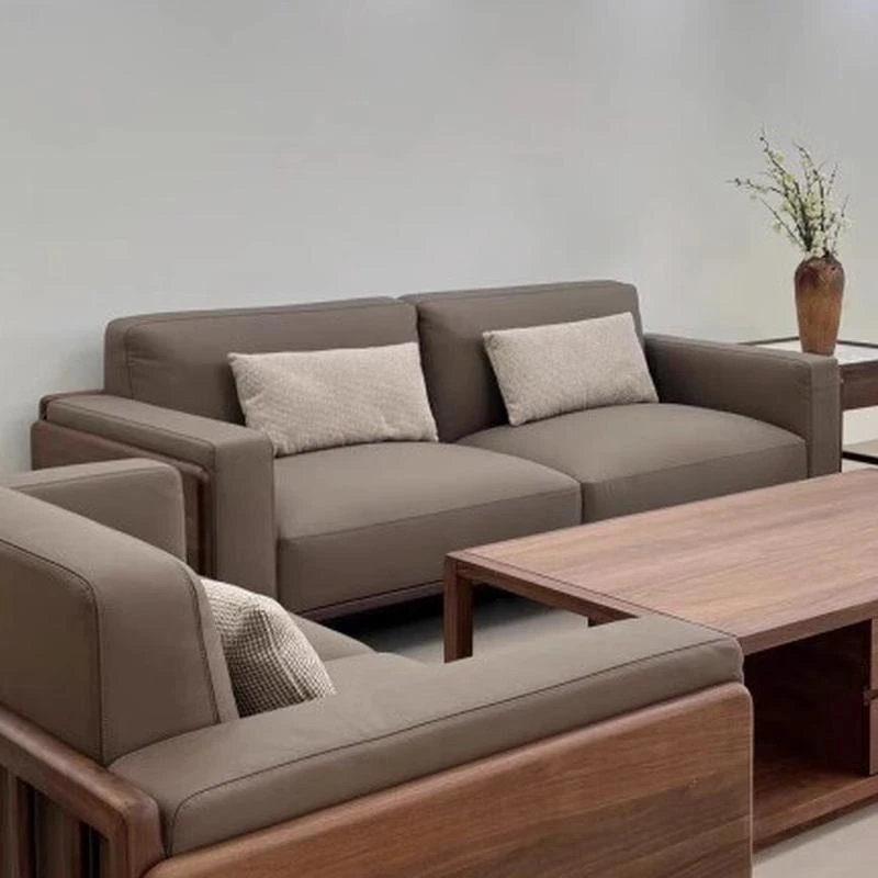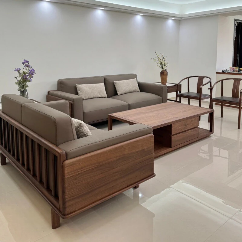 新中式高級ブラックウォールナットソファ&テーブルセット - モダンでシンプルな無垢材のリビングルーム用、上質なひとときを演出するくつろぎのソファチェア。