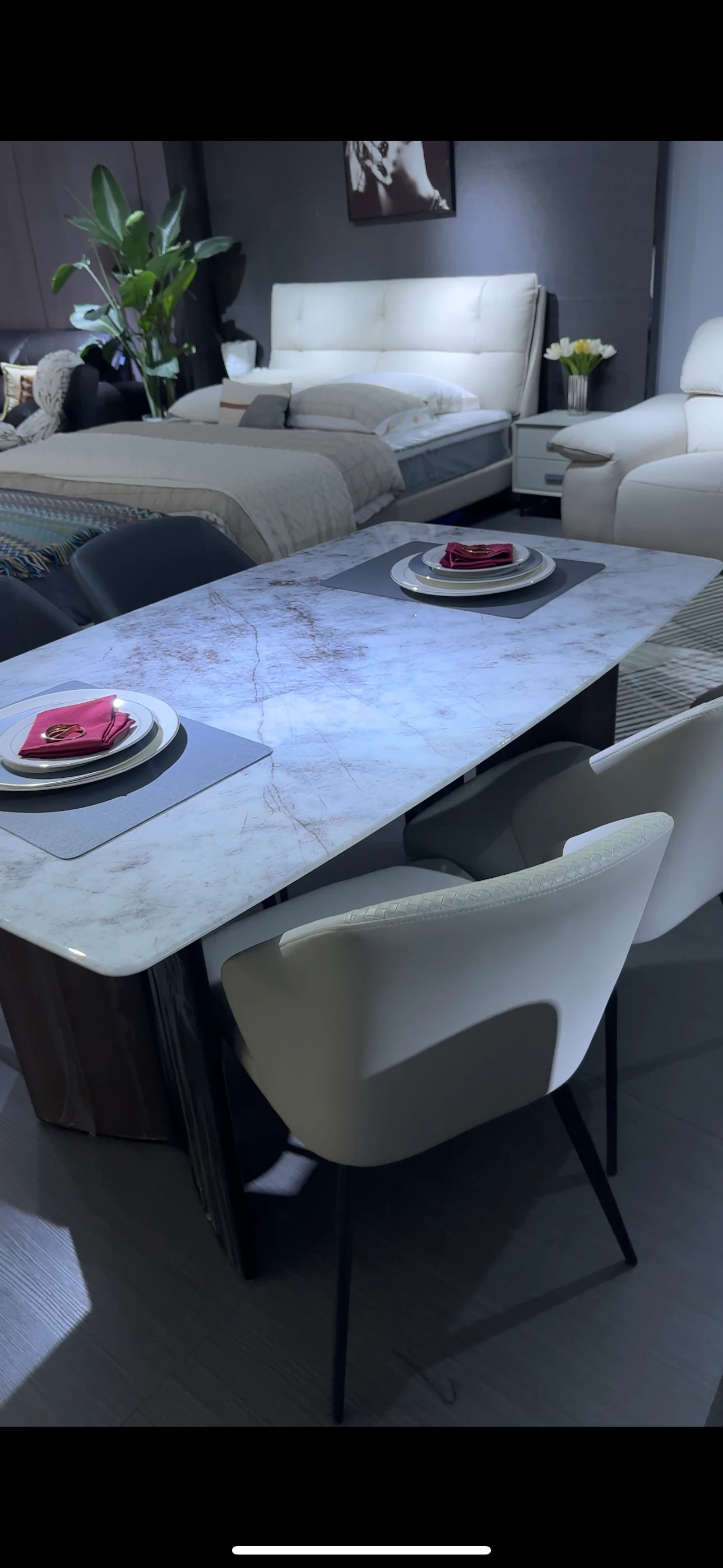 家庭用大理石ダイニングテーブル|モダンでシンプルなイタリアンデザイン|2025年版ロング型テーブル|高級感溢れる軽奢スタイルで食卓を彩る!