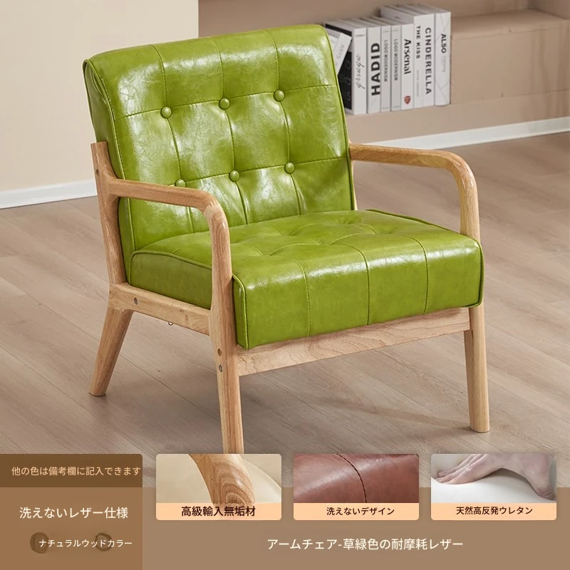 【防水オイルワックスレザー】シングルチェア-ナチュラルウッドフレーム-フルーツグリーン9936