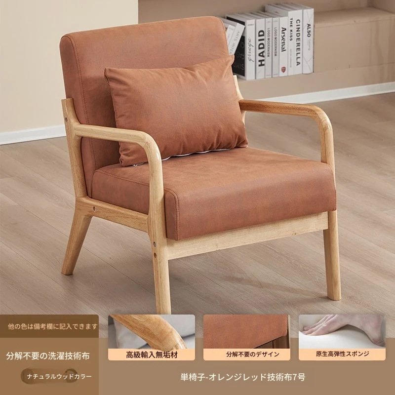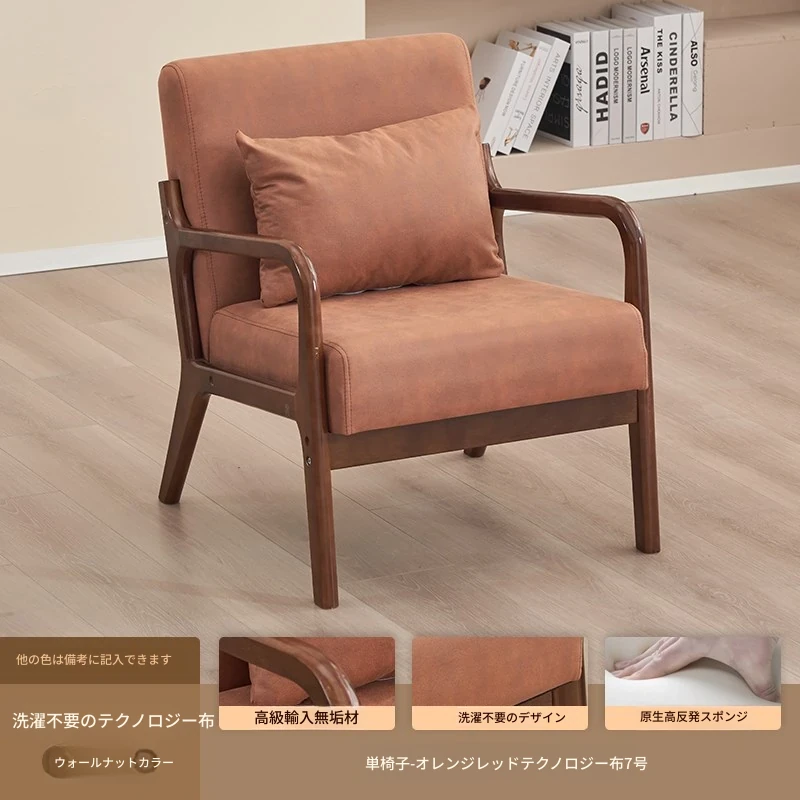 【洗濯不要テクノロジーファブリック】シングルチェア-ナチュラルウッドフレーム-オレンジレッド7