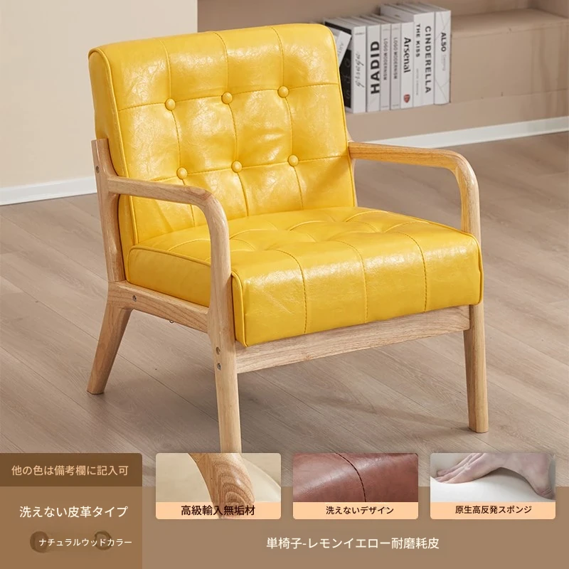 【防水オイルワックスレザー】シングルチェア-ナチュラルウッドフレーム-レモンイエロー9035