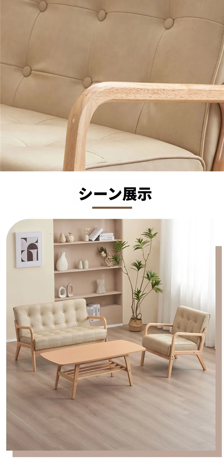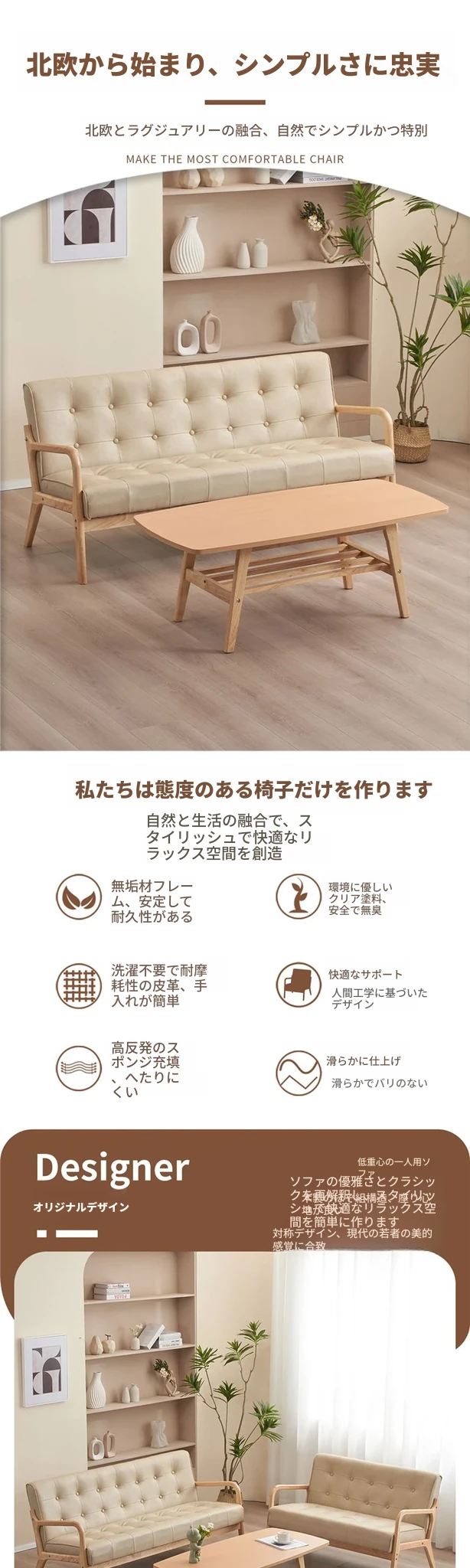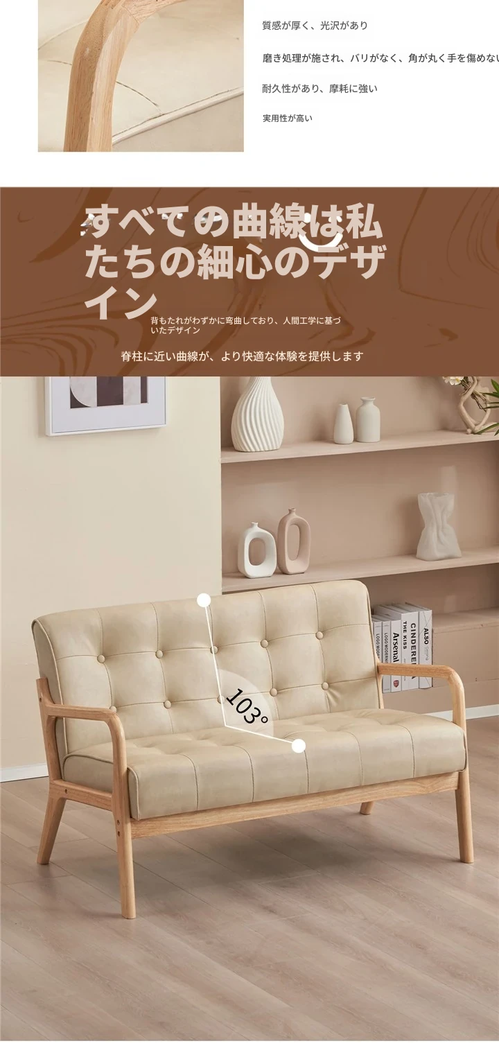 エルゴノミックデザインの無垢材ソファー!リラックスできるカジュアルチェア、居心地抜群の休憩用椅子。会議や接客にも最適なコンパクトソファで、心地よいひとときをお楽しみください。