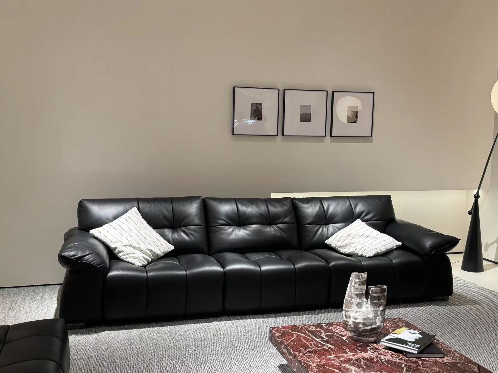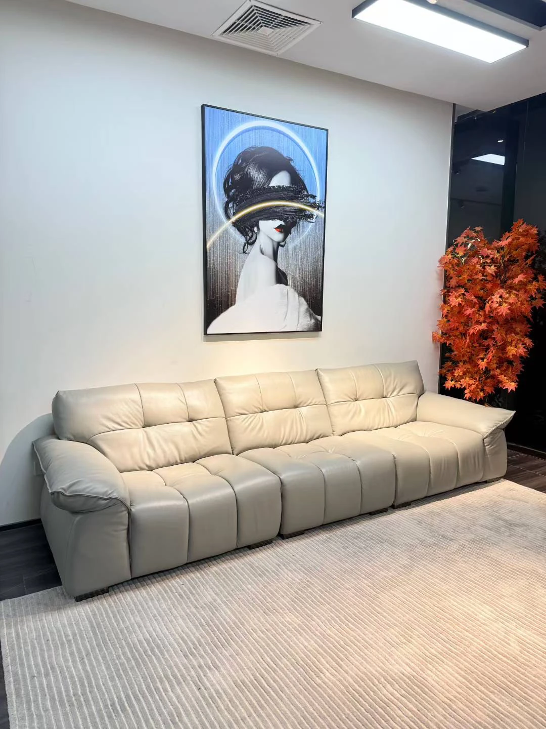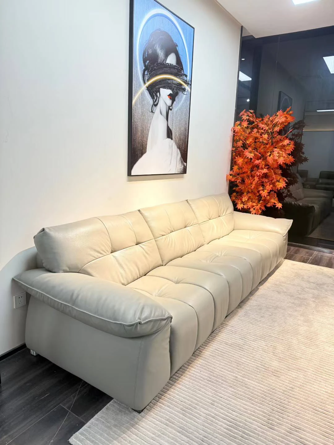 佛山のイタリアンミニマリスト本革ソファ 2025年新作!モダンでシンプルな一級牛皮製、リビングルームにぴったりのストレートデザインソファ。快適さとスタイルを兼ね備えた一品です!