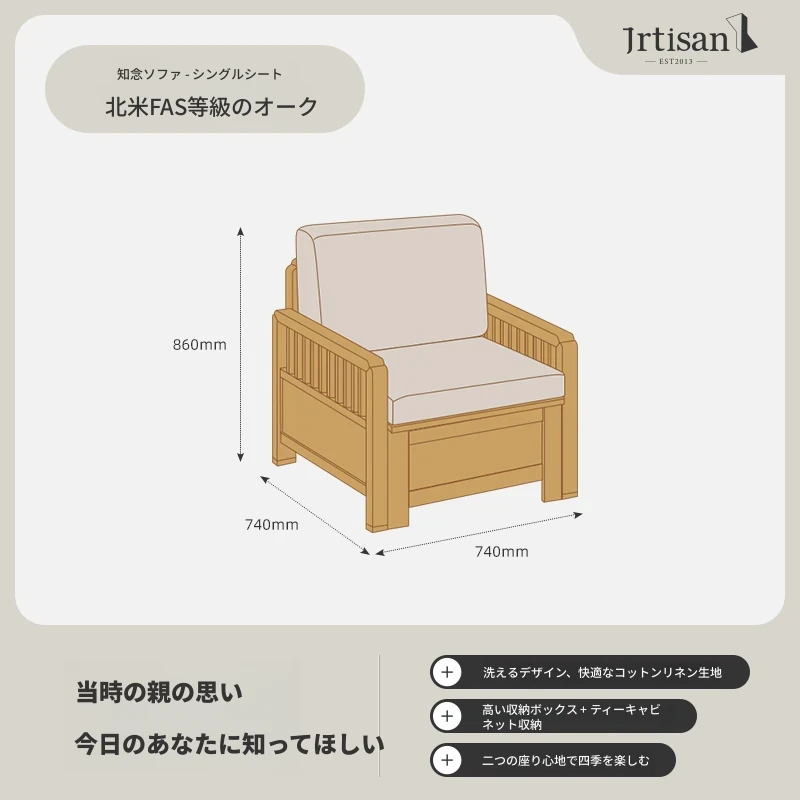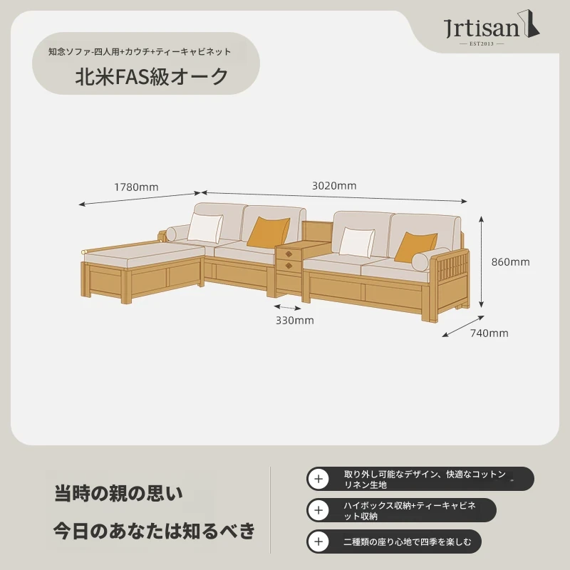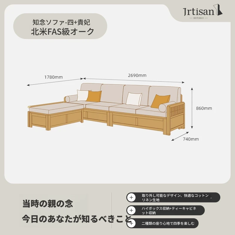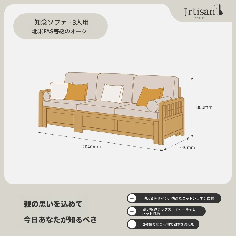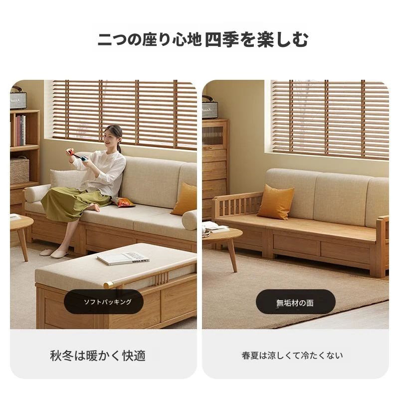 【香港送料無料】新中式全木製三人用ソファ&二人用コンビネーション!冬も夏も使える角型収納付き、北欧スタイルでおしゃれに!お部屋を華やかに彩る一品です!