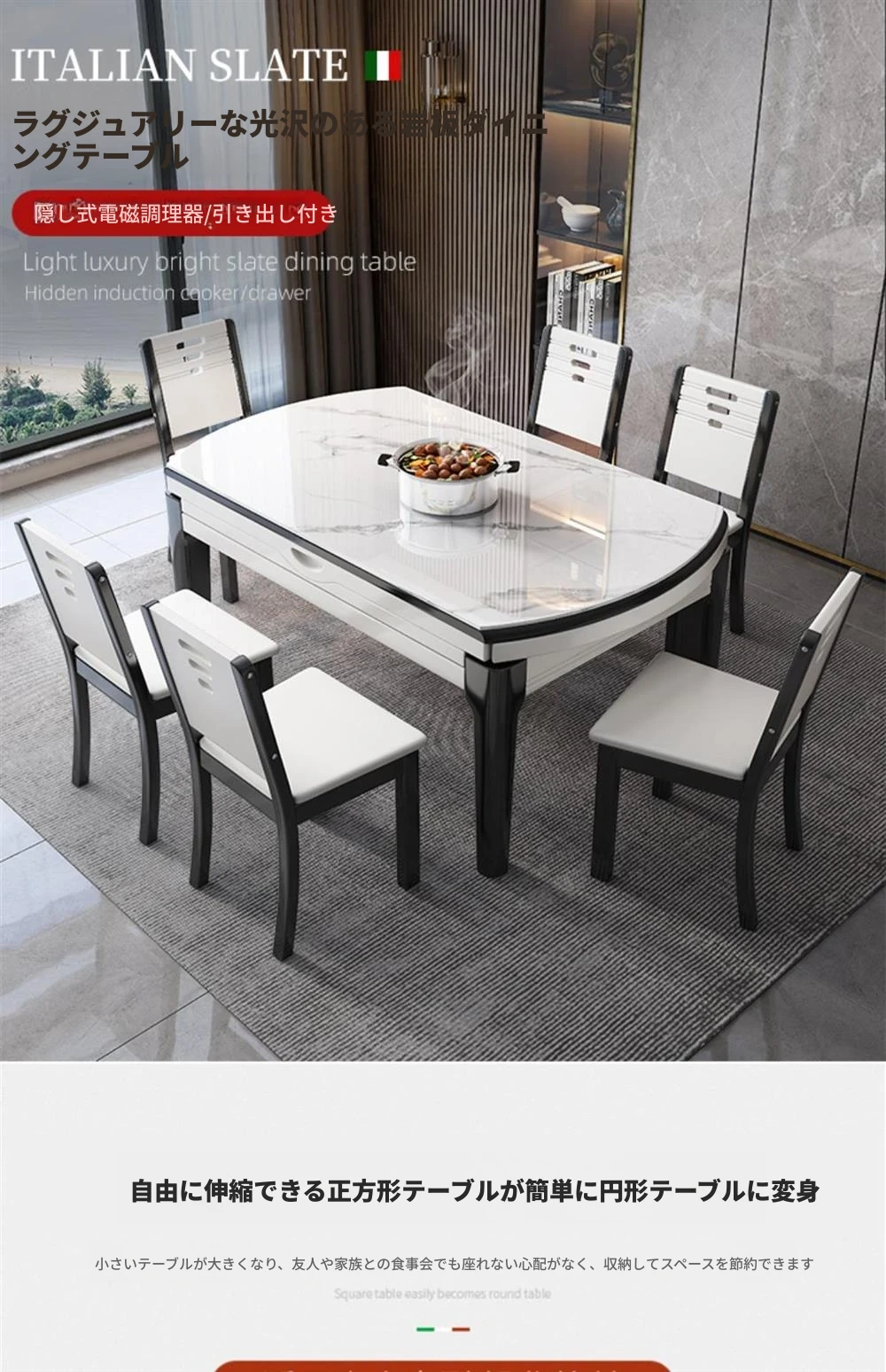 香港送料無料!折りたたみ可能な伸縮式円形ダイニングテーブルセット。小型住宅に最適!電磁調理器付きで便利な食卓。家族や友人との楽しい食事タイムを演出します!