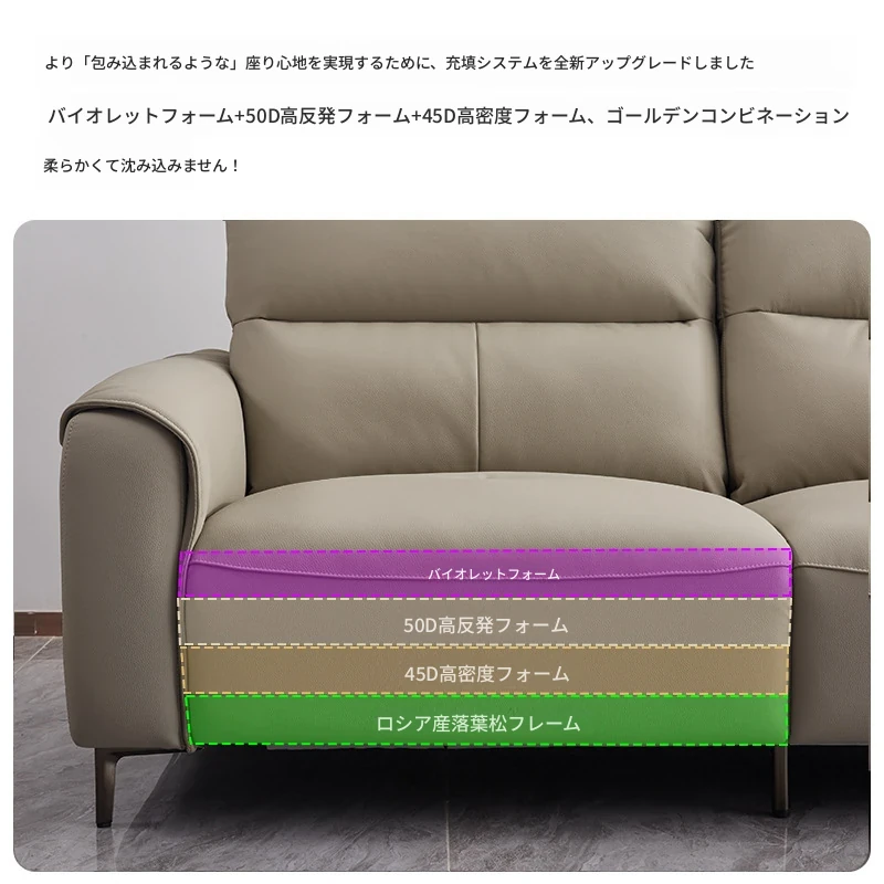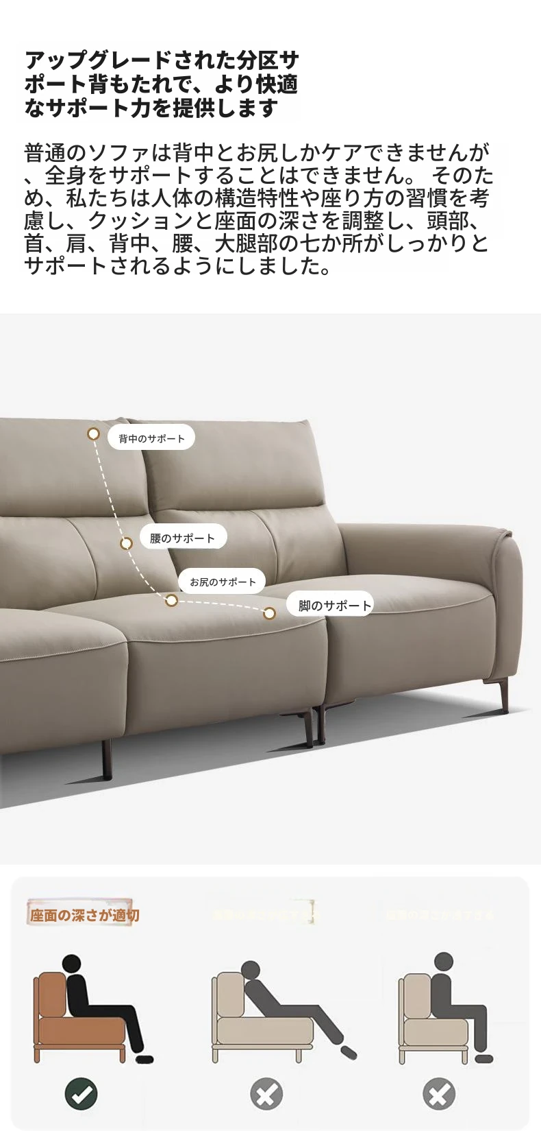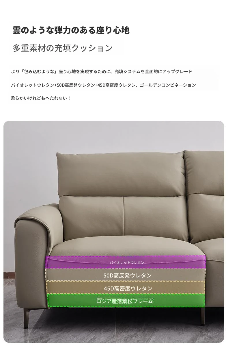 イタリアンミニマリズムの直排真皮ソファ - 新作!小さなリビングにぴったりなシンプルでモダンなデザイン。高級本牛革使用で、快適さとスタイルを両立。あなたの家に理想的な一品です!