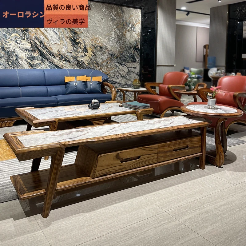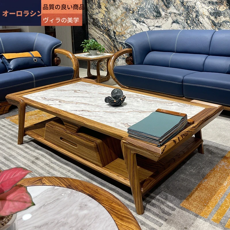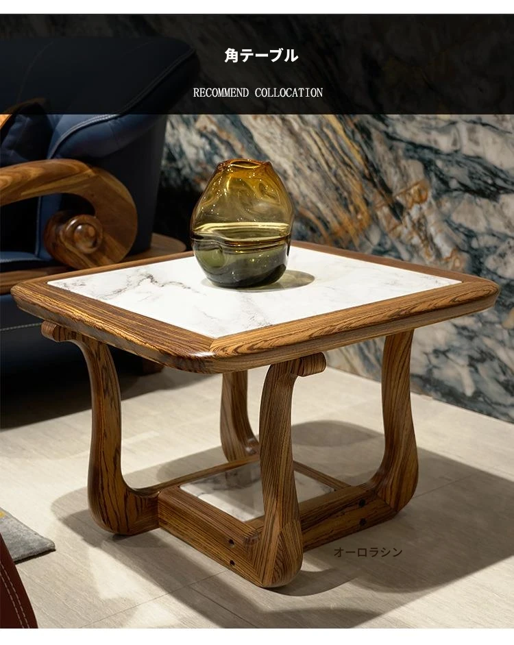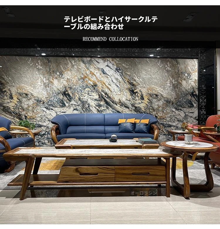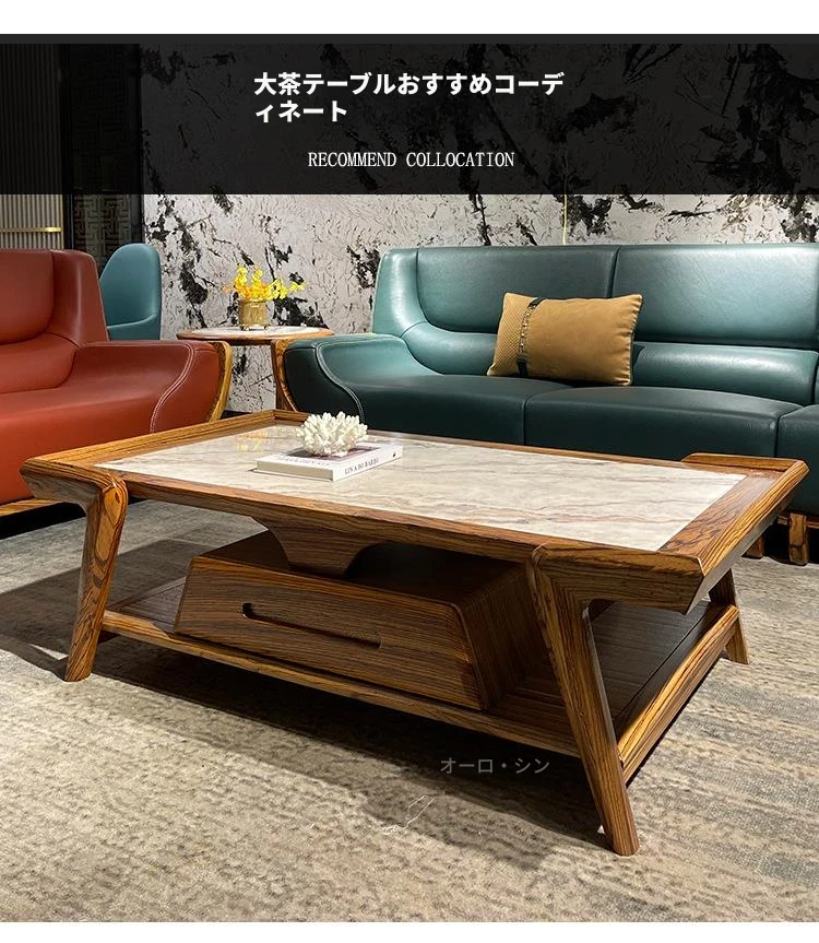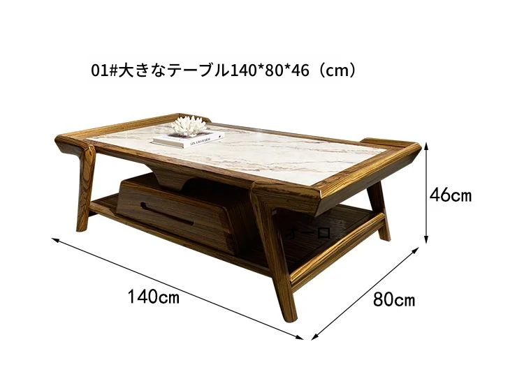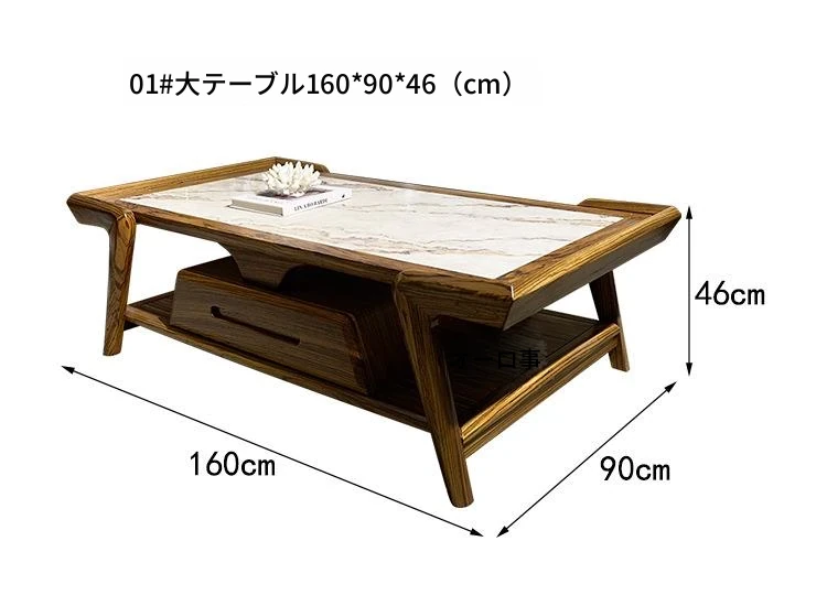 ウッドブラックマーブルコーヒーテーブル