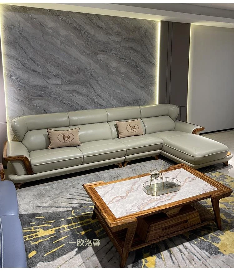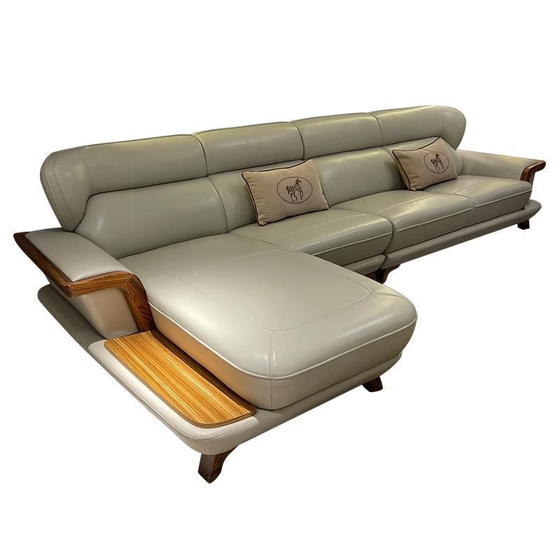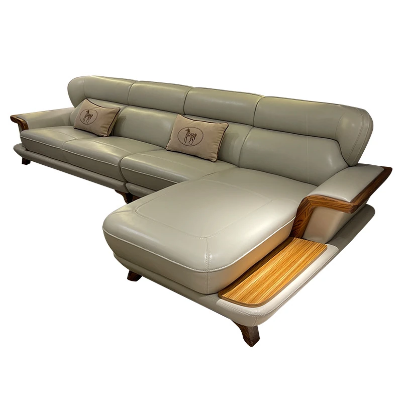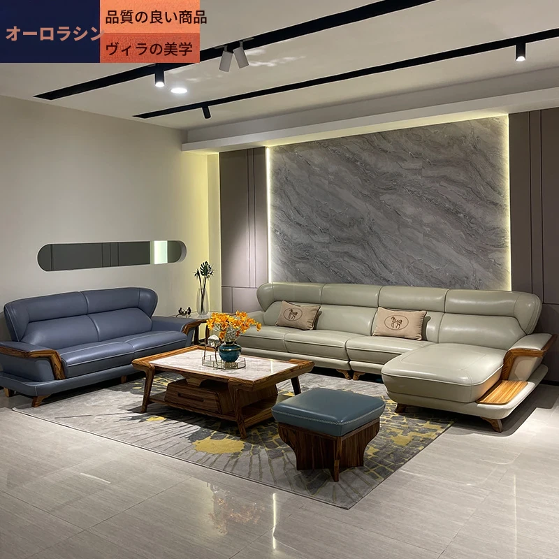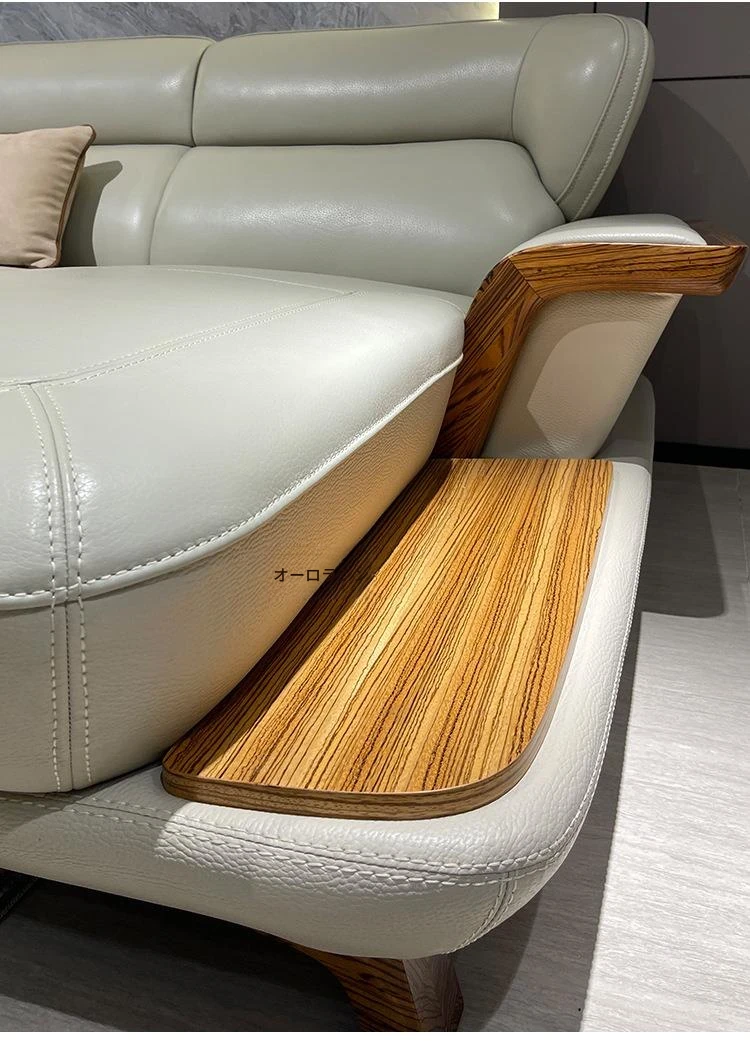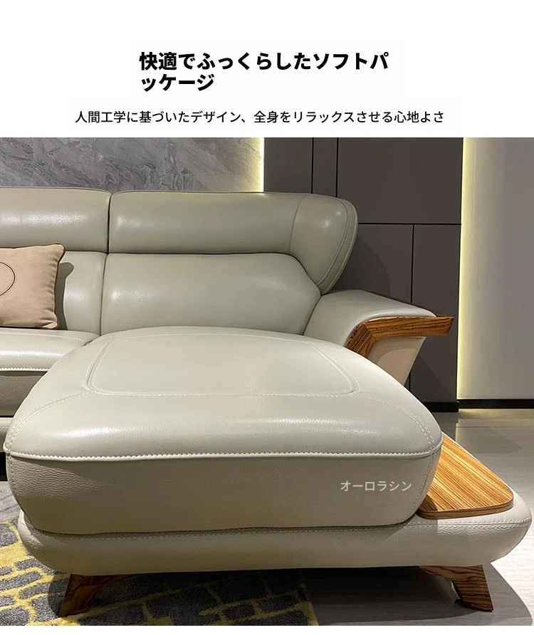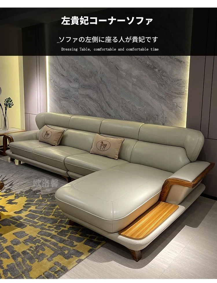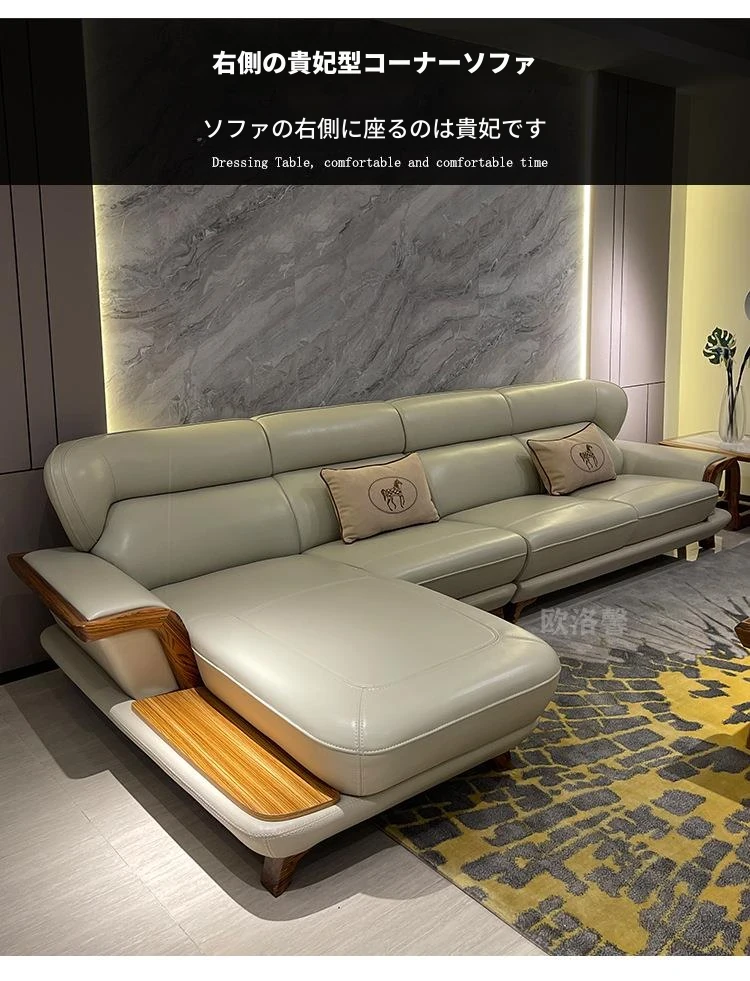 高級ウッディーウッドソファ、上質な本革カウチ、豪華なL字型デザイン、真の快適さを追求したリビングの中心に。高層マンションにもぴったりのスタイリッシュな選択です!