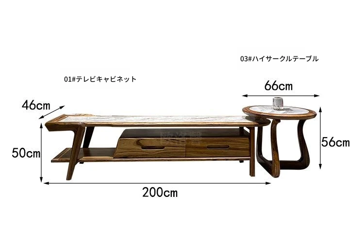 ウッドブラックマーブルテレビキャビネット