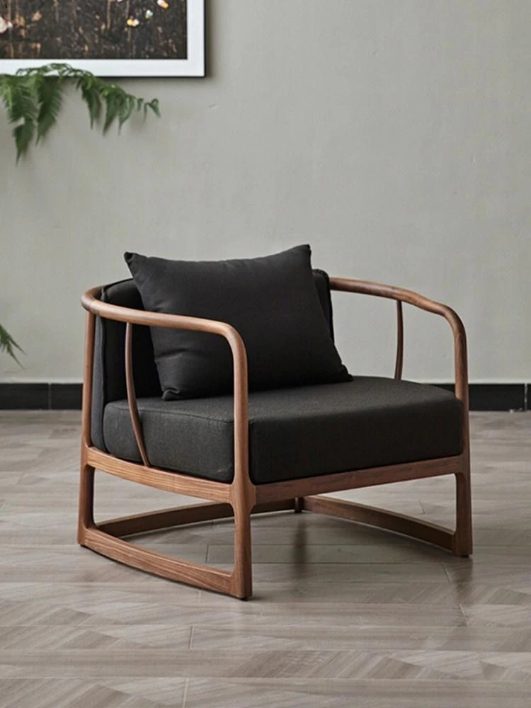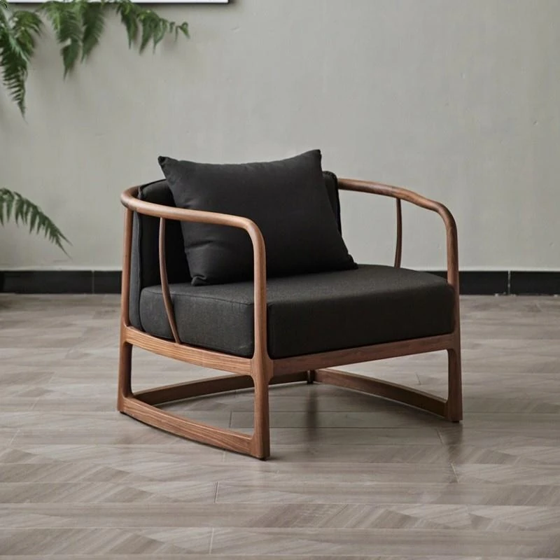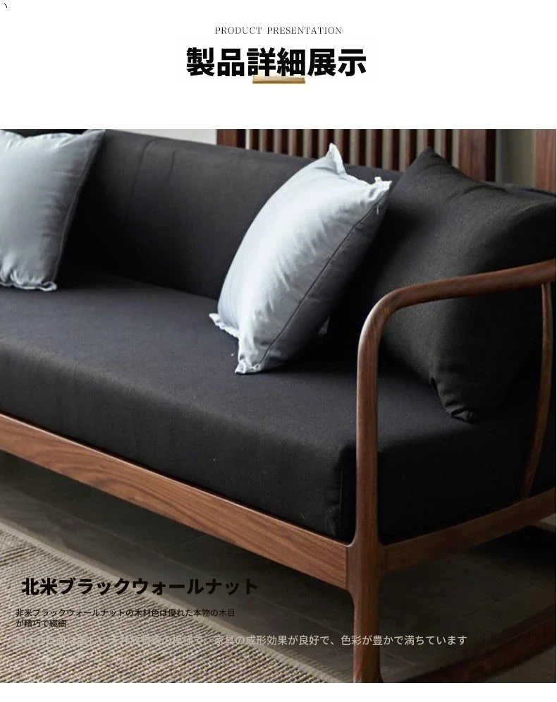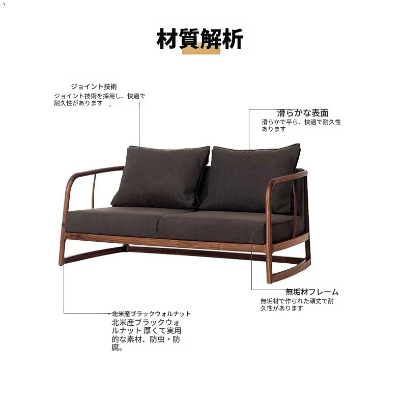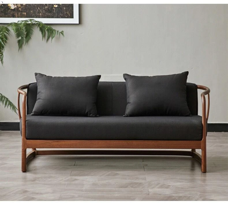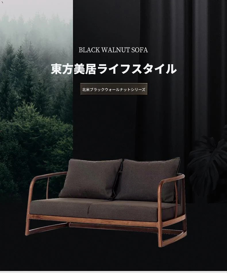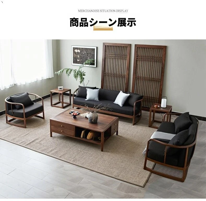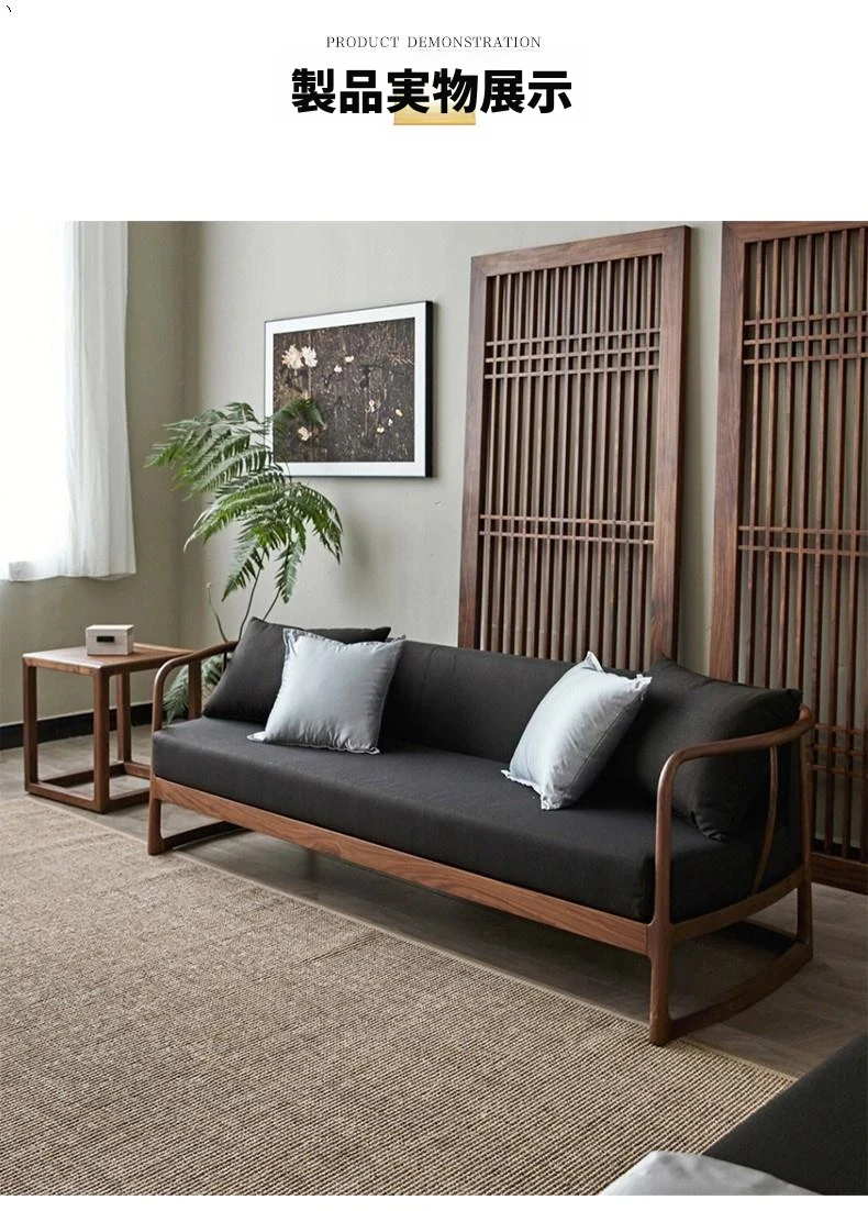 新中式デザインの北米ブラックウォールナットソファー - 宋の美学を融合した禅のスタイル、シンプルでエレガントなリビング・オフィス家具。心地よいひとときを提供します。